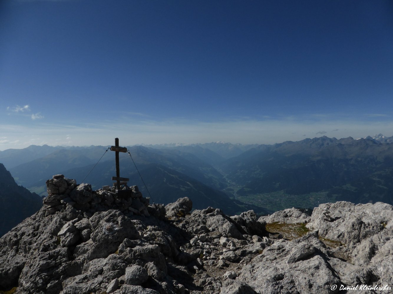 Über Grat rechts haltend (östlich) zum Gipfel, über Steig zur Karlsbaderhütte und weiter zur Dolomitenhütte (1,5 Stunden).