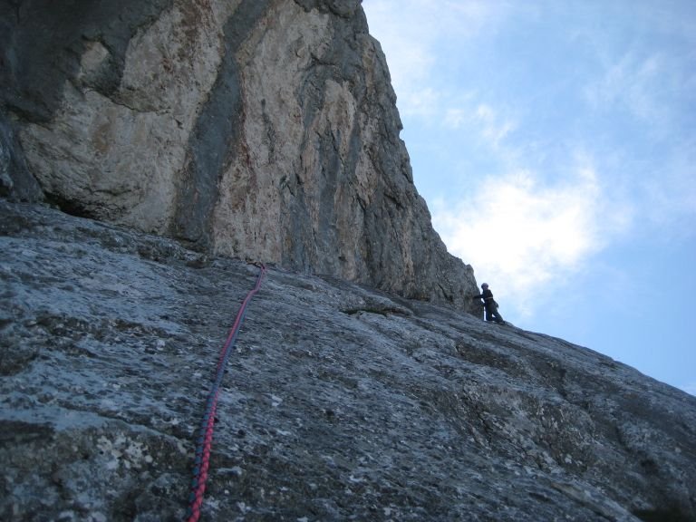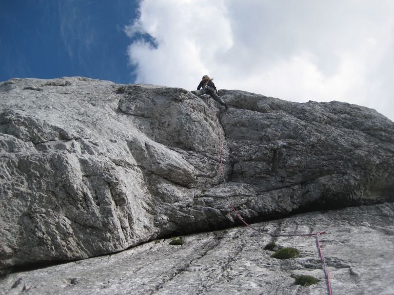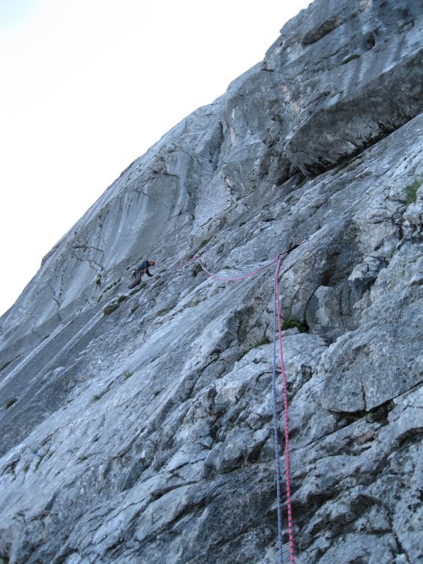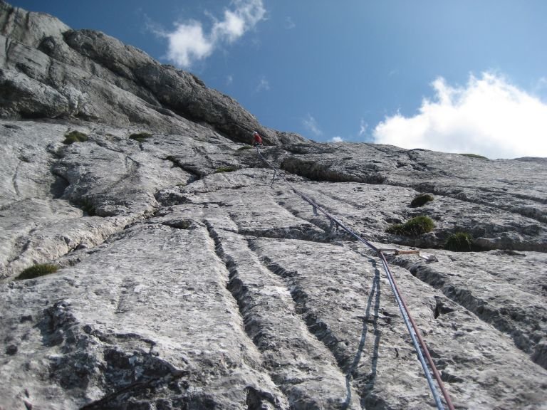 Achtung: 3. Seillänge ist in gerader Linienführung entlang der Haken genau 50 m lang!