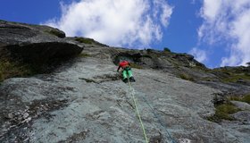 Sehr schöne Platten- und Wandkletterei auf bombenfesten, ausgewaschenen Grünschieferplatten. Durch die sonnseitige Lage kann bis sehr spät im Jahr bzw. früh im Jahr geklettert werden. Äußerste Vorsicht soll bei Schnee (Lawinenstreifen!) bzw. Gewitterlage geboten werden.