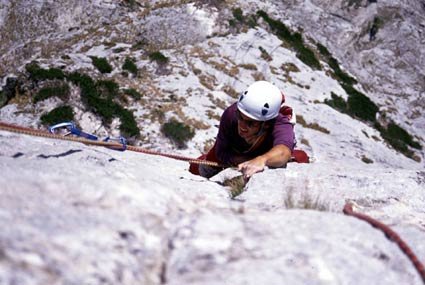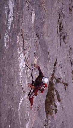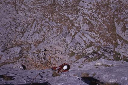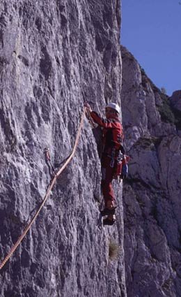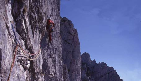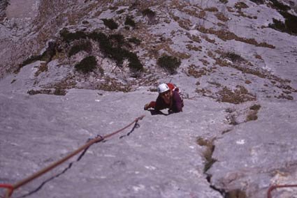 Es müssen Stellen bis 8- zwingend geklettert werden! Zur Beschreibung a la elitär eingebohrt usw.: Eigentlich gibt’s nur eine schwere zwingend zu kletternde Stelle, und auch in der kann man sich nicht weh tun...Die Wiederholer haben ähnliches gemeint, ist also eine gut abgesicherte Tour, in der man tatsächlich nur einen Friend benötigt, und zwar in der ersten Seillänge.