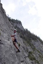 An den Ständen gibt es Bolts. Zwischenbolts gibt es nur dort, wo keine guten Sicherungen gesetzt werden können. 7+ ist obligat und muß weitgehend selber abgesichert werden. Das Platzieren der Sicherungen ist der Schwierigkeit entsprechend nicht besonders anstrengend.