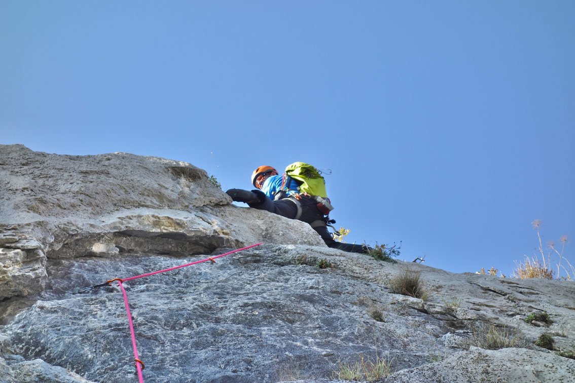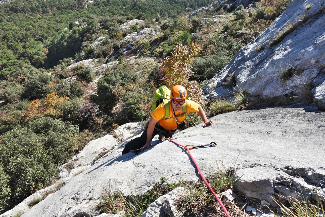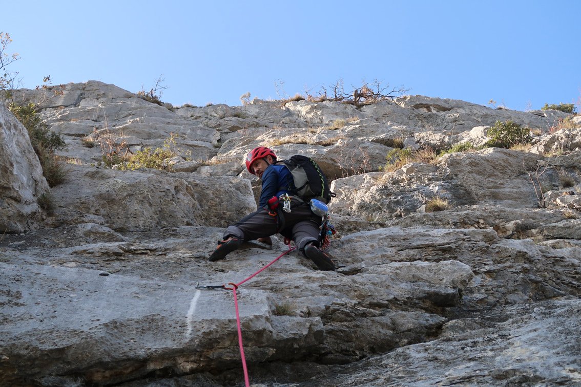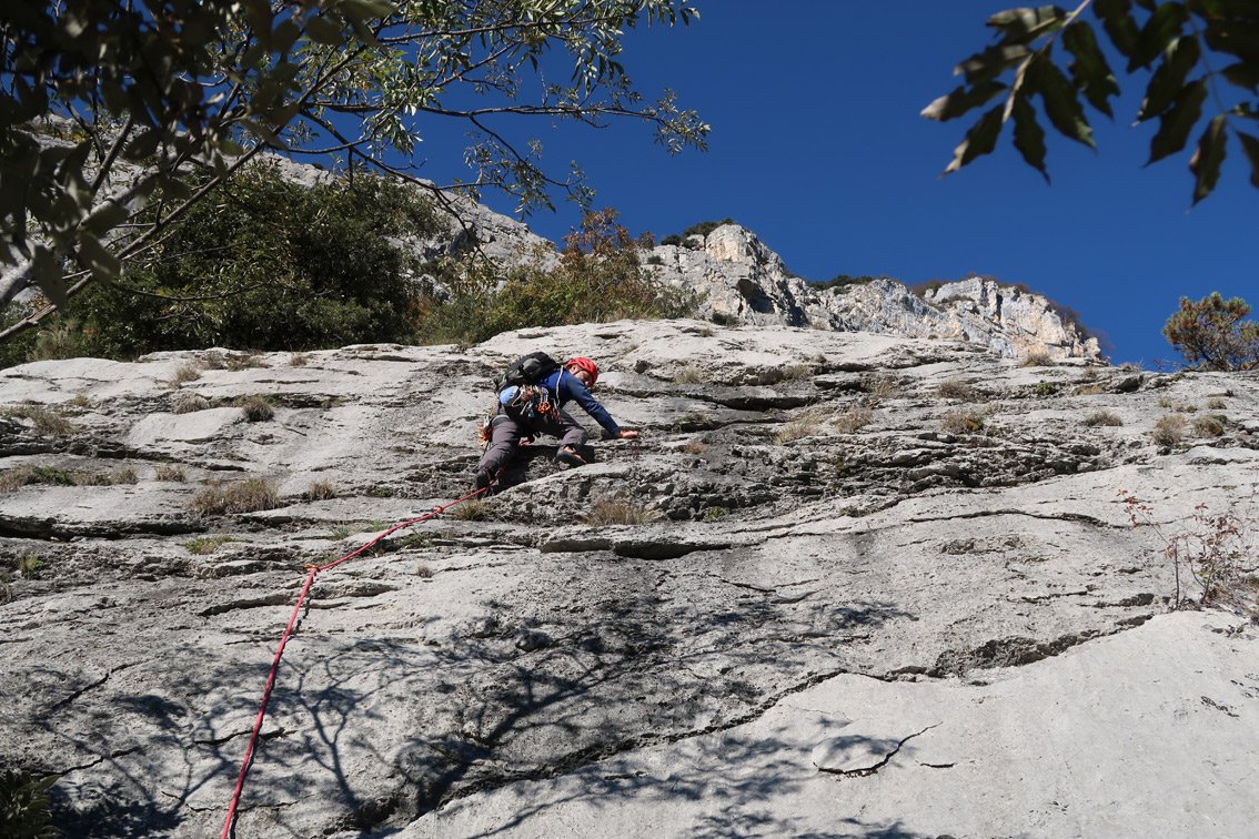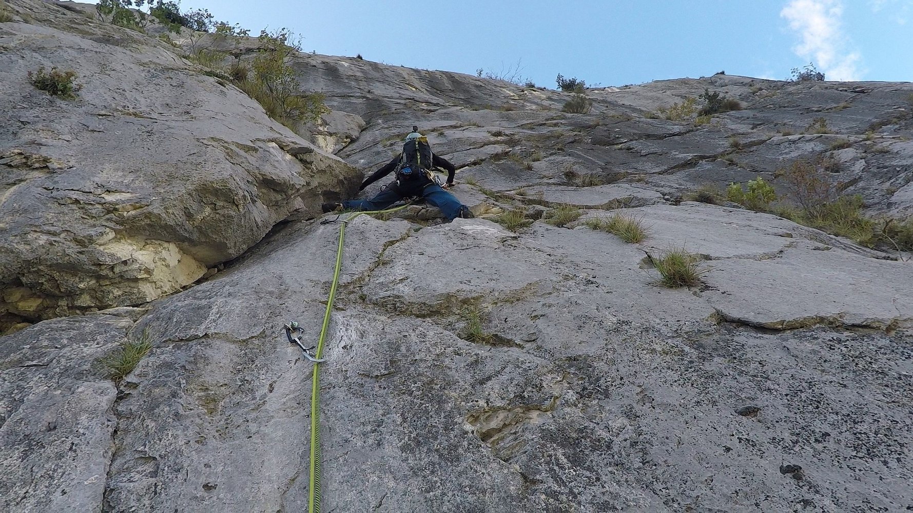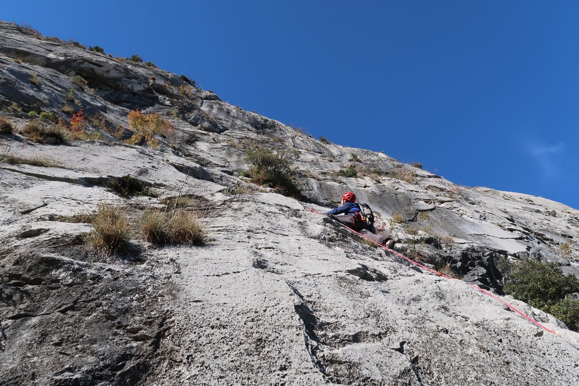 Sehr gute, lange Plaisirroute bei Dro. Die Tour beginnt mit gemütlichen, oft geneigten Platten, nach dem großen Band stellt sich die Wand etwas auf und man klettert an bestem Fels hinauf bis zum Ausstieg. Auch die unteren Platten sind recht griffig, die oberen Seillängen perfekte, griffige Ausdauerkletterei. Fazit: Eine sehr schöne Route im mittleren Schwierigkeitsbereich, die man sich auf jeden Fall einmal anschauen sollte!