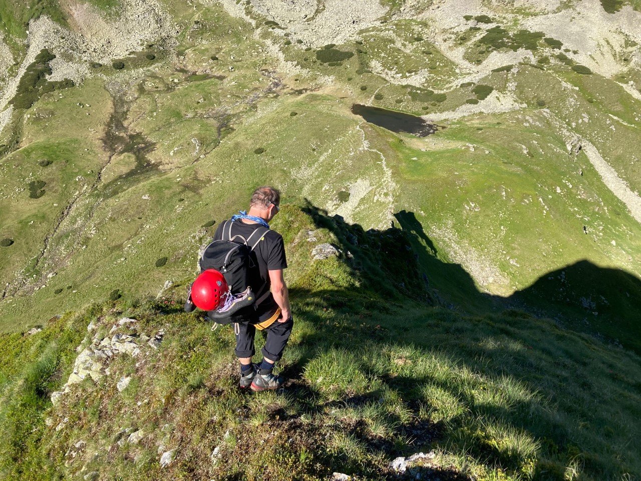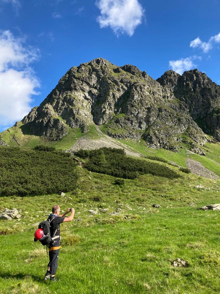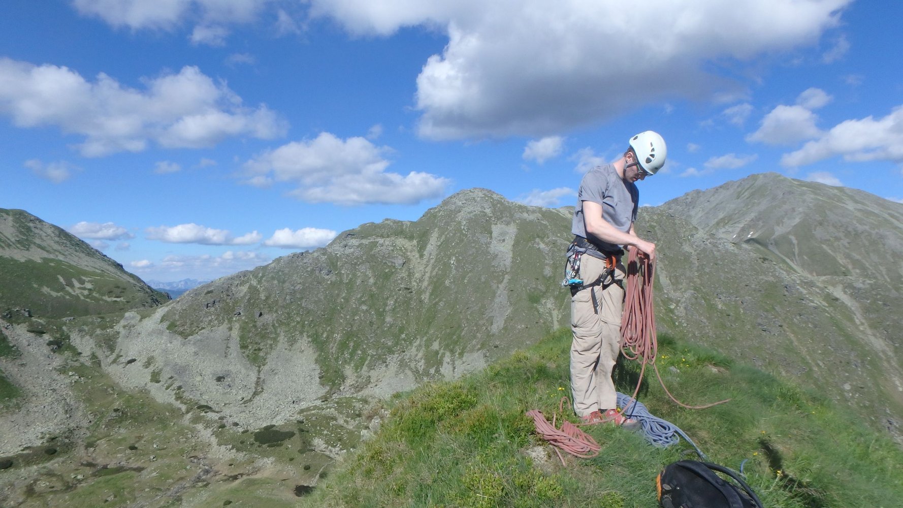 b) Abstieg über den steilen, grasigen, schrofendurchsetzten Ostgrat zum Schaunitztörl (Stellen 1+), Abstieg durch das Schaunitztal zur Bergerhube.