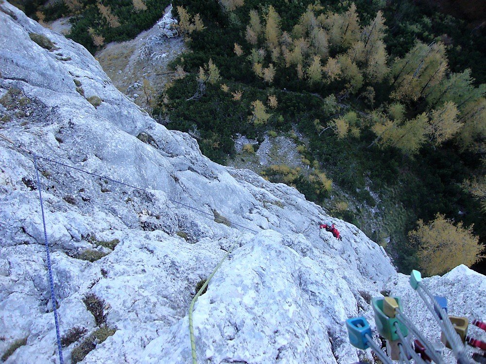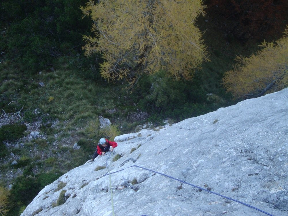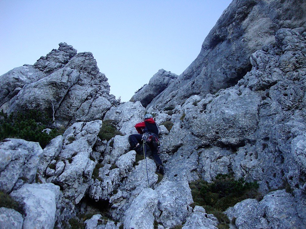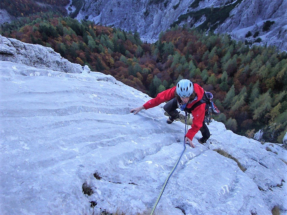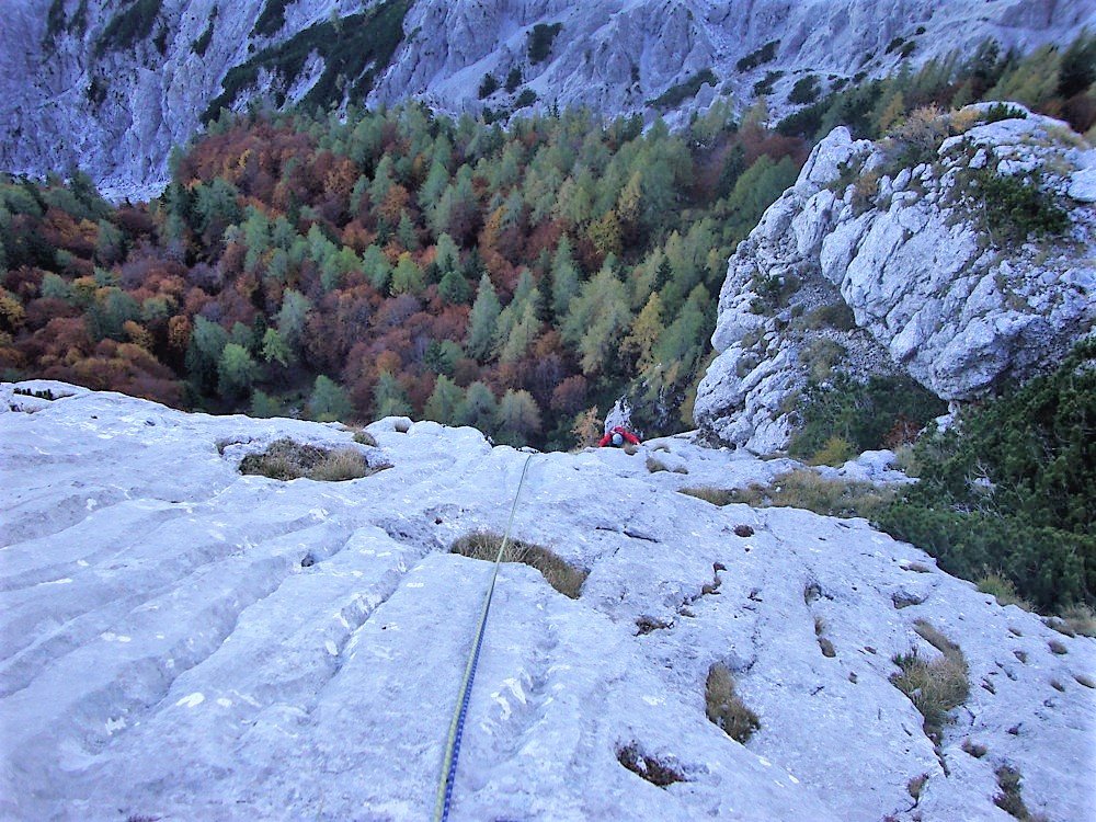 Sehr schöne Kletterei am östlichen Ende der Koschuta. Obwohl die Klettertour relativ kurz ist, zahlt es sich aus, dorthin aufzusteigen, da man mit dem „Videoclip“ (5-) eine weitere kurze Alpintour nebenan vorfindet. Gerade im Herbst, wenn die Tage schon kürzer sind, kann man die letzten Sonnenstrahlen beim Klettern im wahrscheinlich besten Fels der Karawanken genießen. Die Gegend ist sehr abgeschieden und ruhig- enjoy!