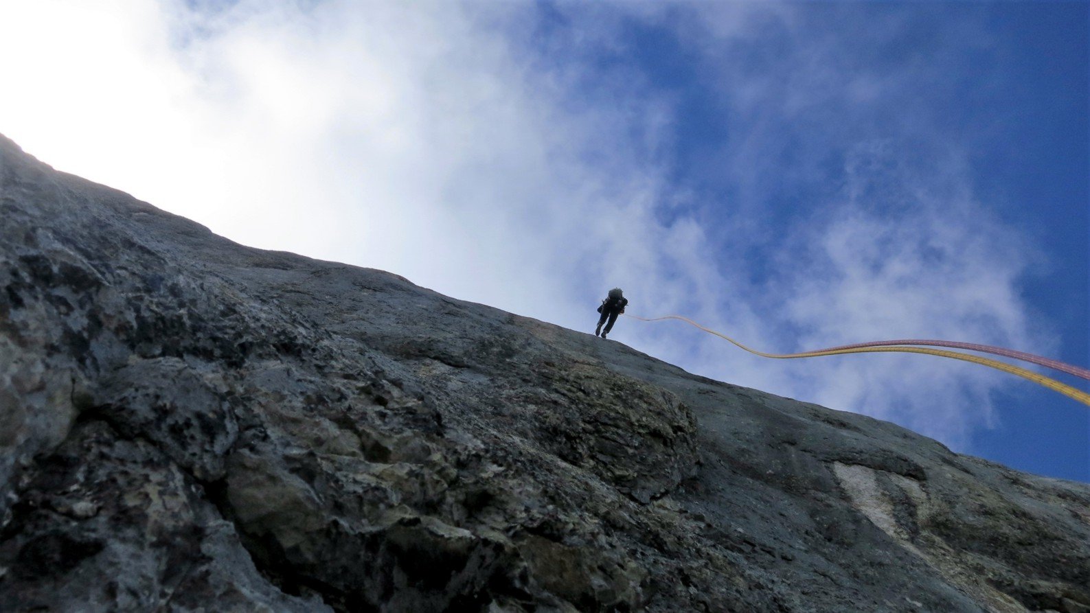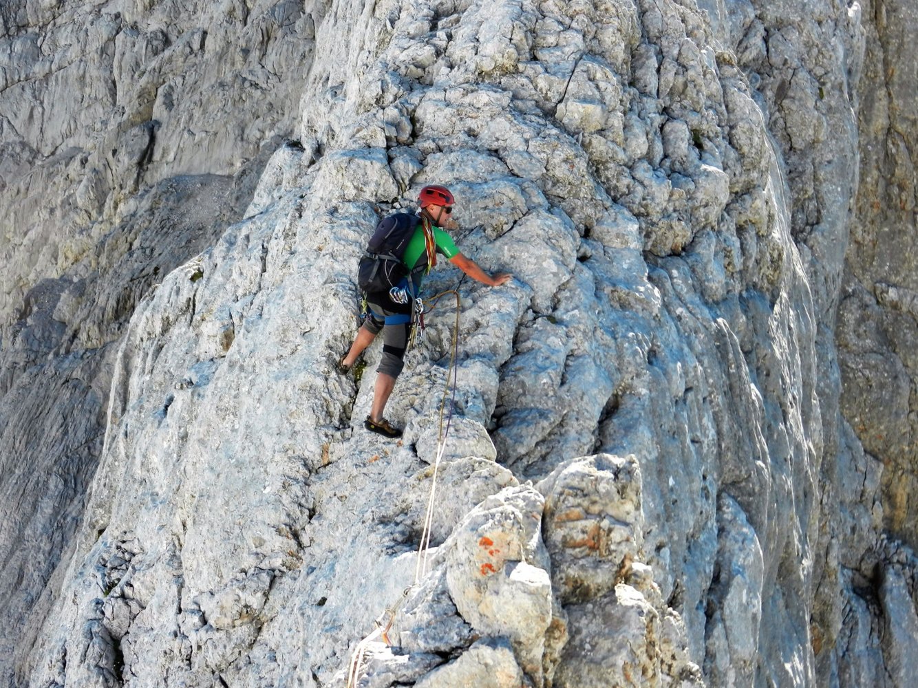 Für den Schwierigkeitsgrad und das alpine Gelände gut mit Bohrhaken gesichert, der Vorsteiger sollte den dritten Grad aber solide beherrschen.