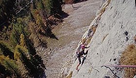 Sehr schöne Platten- und Risskletterei in bestem Fels. Gut abgesichert und zum Abseilen eingerichtet. Die Route durchzieht einen markanten Plattenpfeiler im rechten niedrigen Teil der Höllmauer. Gut zu kombinieren mit der Route Kleines Paradies.