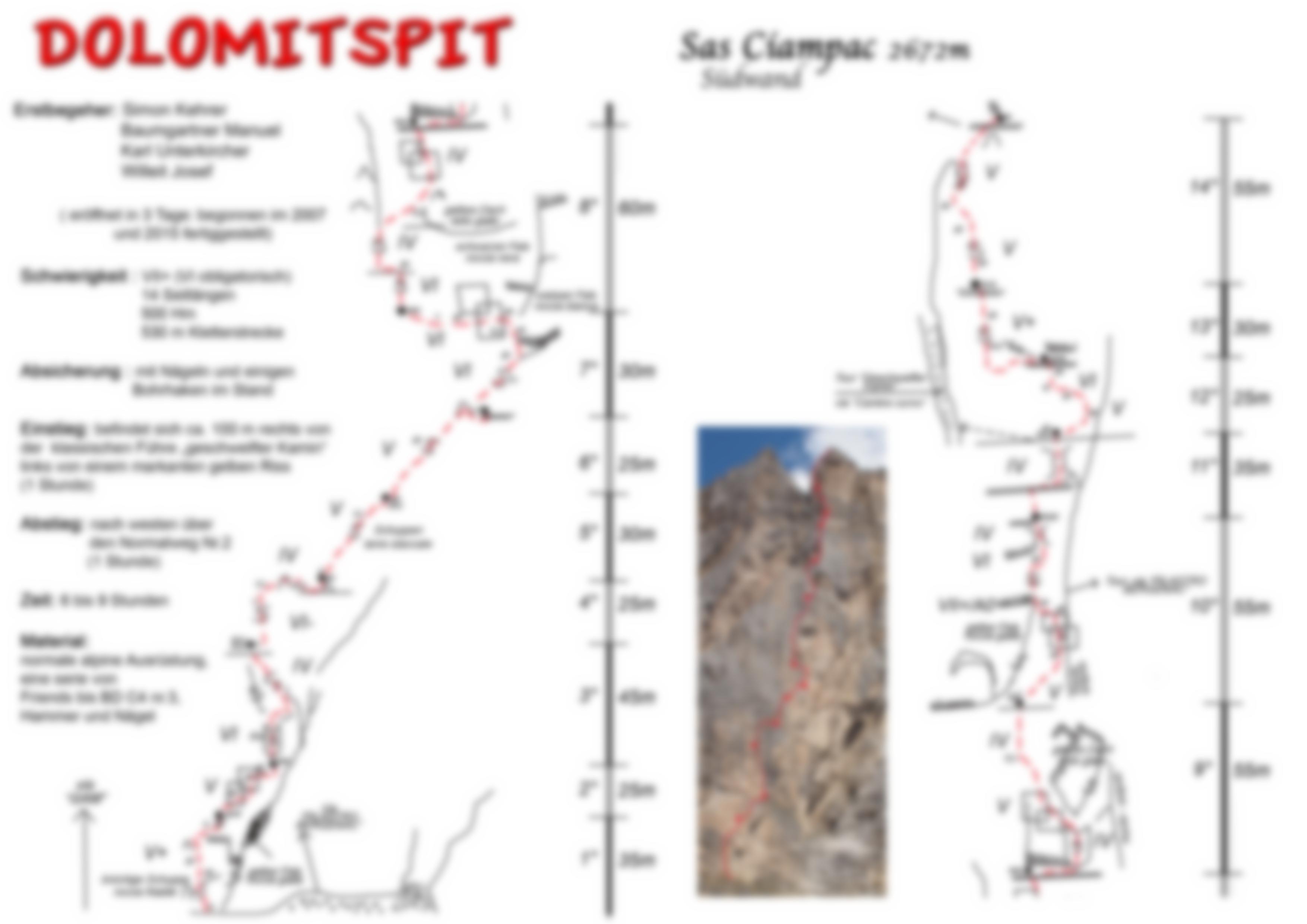 An der für den Herbst idealen Südwand des Sass Ciampac wurde eine neue Kletterroute erstbegangen. Es ist eine anspruchsvolle Linie im VI. obligatorischen Schwierigkeitsgrad. Nach einigen Anläufen im Jahr 2007 mit Karl Unterkircher und Josef Willeit, konnte Simon Kehrer im Oktober 2015 die Route mit Manuel Baumgartner vollenden.