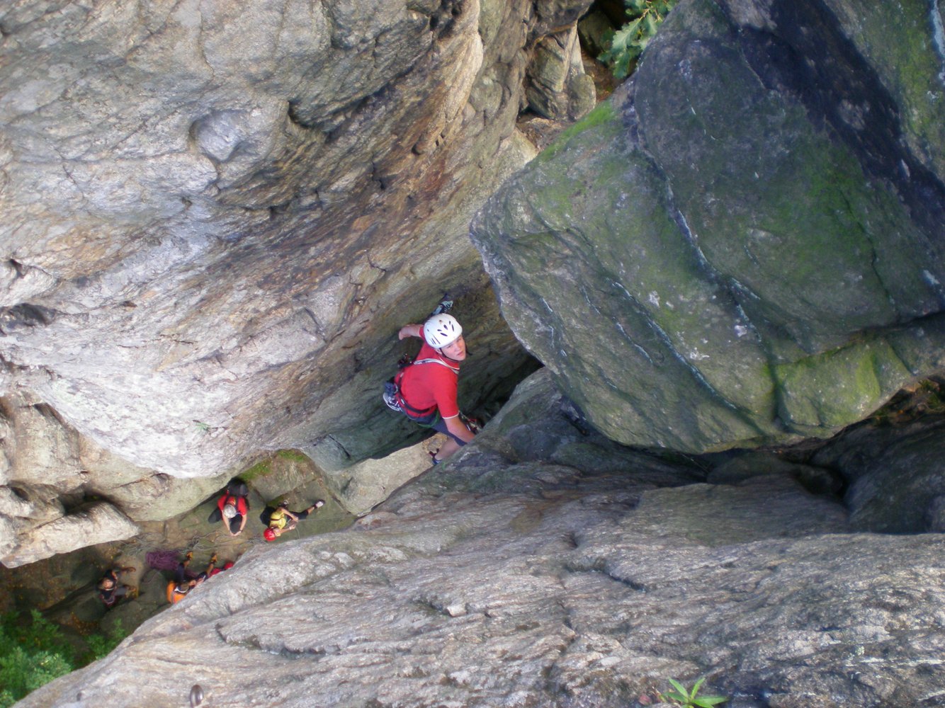Einfachseil, so kurz wie möglich min. aber 35 m. Mittlere Friends, KK-Grundsort., 7 Expr. Schlingen, Bandschlingen für Stand und Helm.
