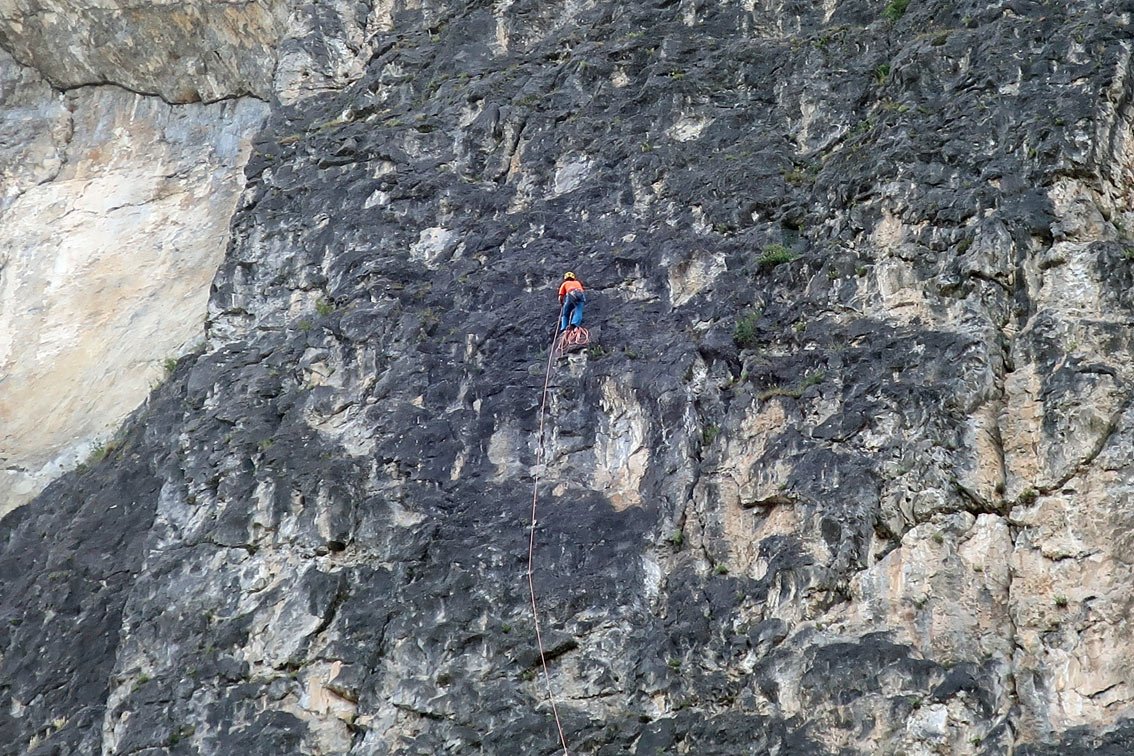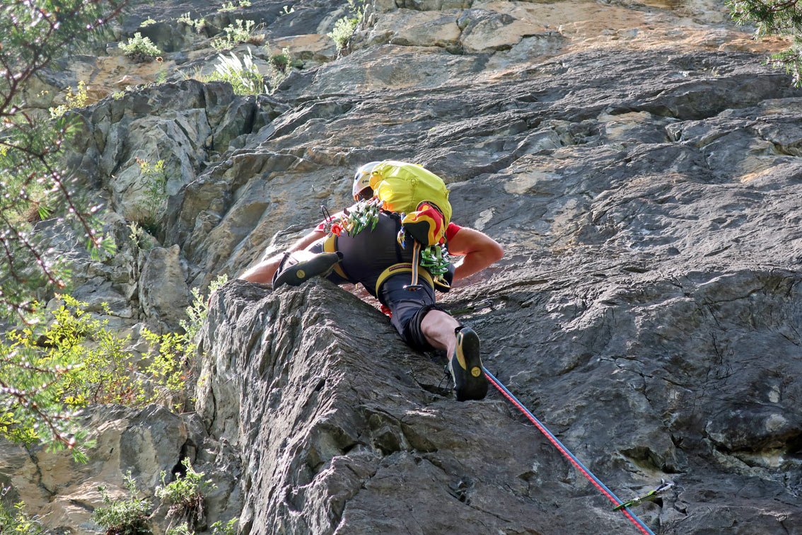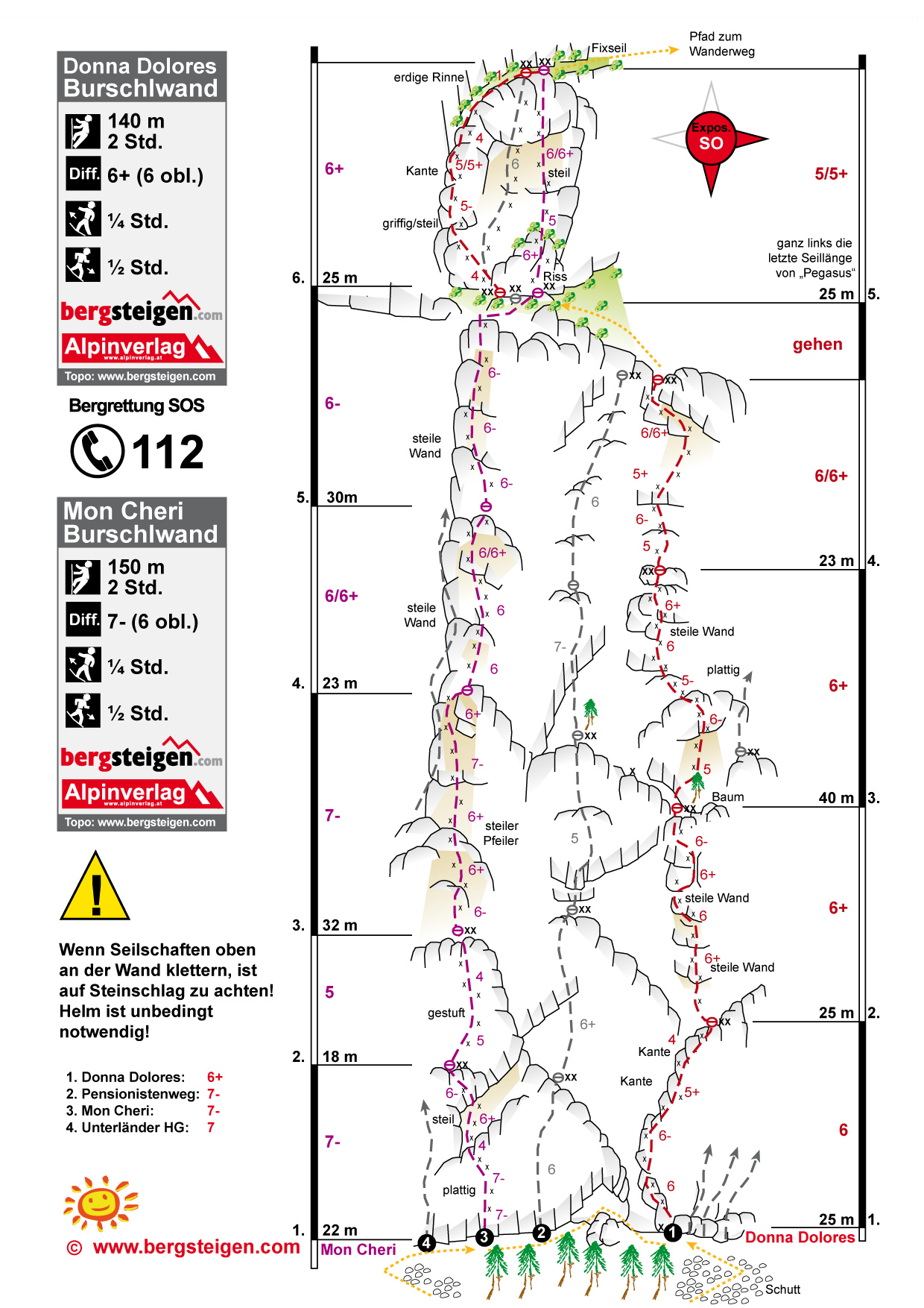 Auf Steinschlag durch Voraus- und in anderen Touren kletternde Seillschaften ist zu achten!