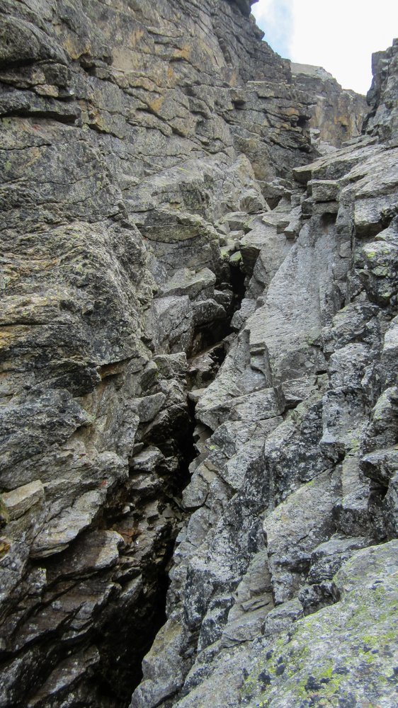 Alpine Tour im besten Granit, Riss ist oft feucht an Schlüsselstelle.