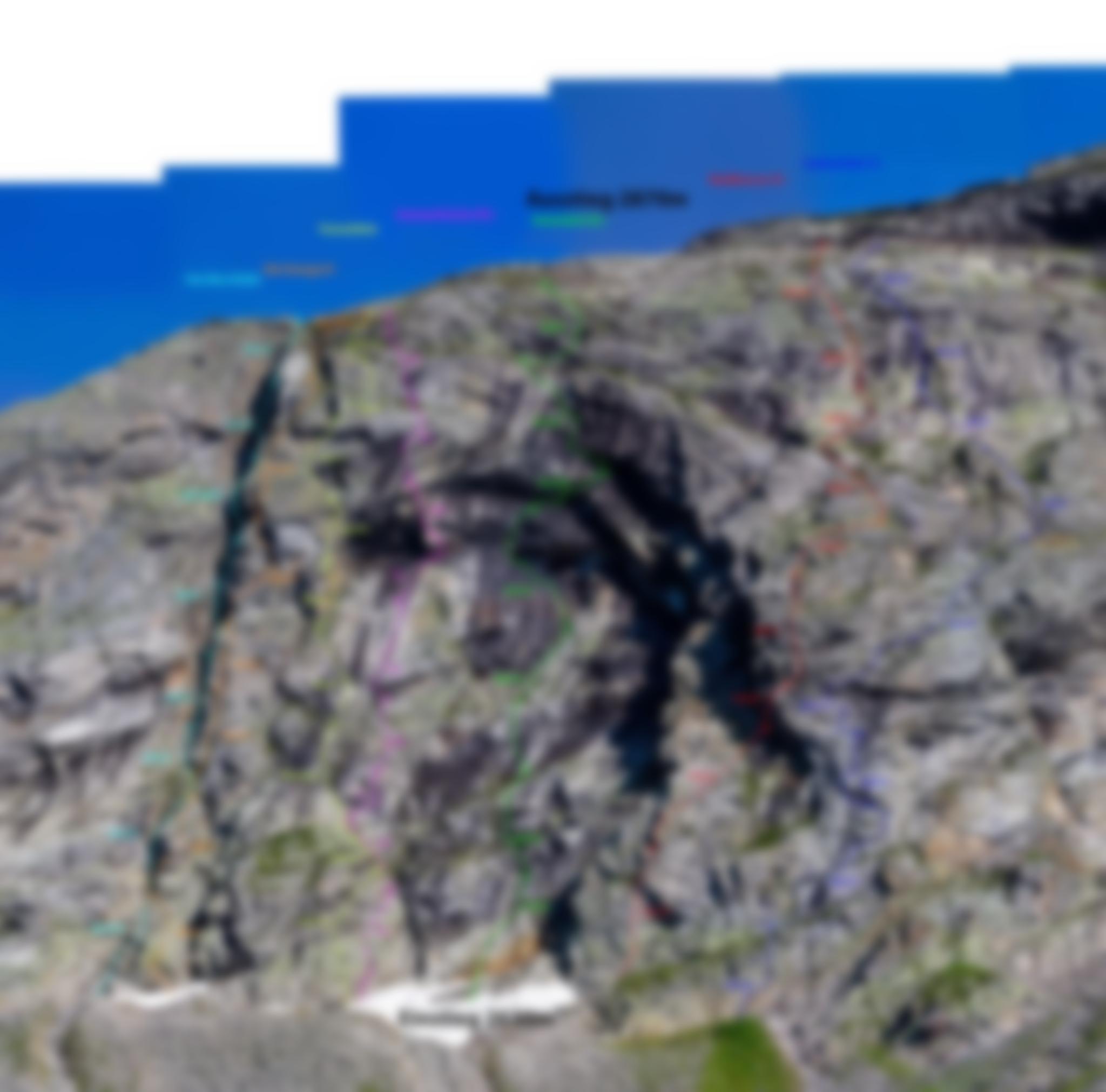 - Abstieg über Zinnen(1-2): Wenn man am letzten Standplatz direkt nach links quert, so kommt man in ein Tal, welchem folgend (Westen) man über großen Schutt bis auf den Landhuter Höhenweg absteigen kann.