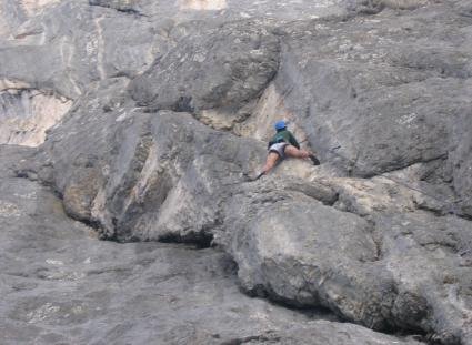 5 SL. VII- 35 m: Wandkletterei. Die alte Route geht nach ca. 20