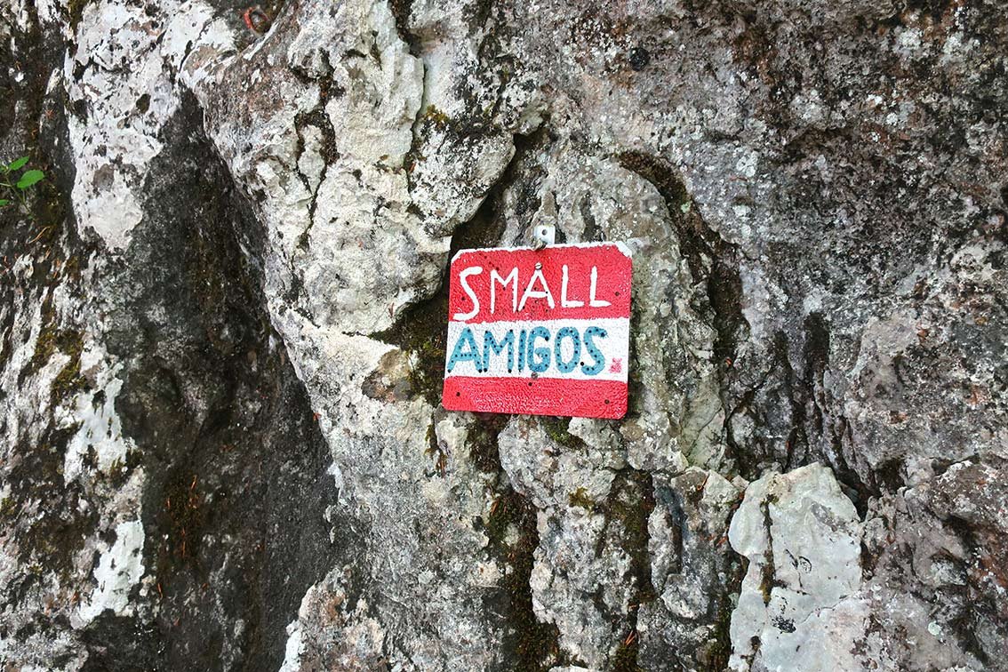 Vom Ghf Mühlradl auf der Teerstraße in Richtung der Felsen, bis man nach ca. 500 m bei einem Wegweiser (804) rechts abbiegt. Dort weiter bis zum Bach, an diesem befindet sich auch der AV-Kinder- und Anfängerklettergarten. Man steigt aber nicht zum Bach ab, sondern bleibt auf dem Forstweg und folgt diesem noch ca. 400 m nach Norden. Dann zweigen rechts zwei Wege ab. Man folgt dem linken, der in einen flachen Graben führt, in diesem Graben dann links (Steinmänner) bis zu einigen Felsblöcken. Dort rechts aufwärts zum Einstieg (Tafel "Irma la Douce") - von dort oder schon etwas darunter nach links zum Einstieg der "Small Amigos" bzw. "Franziskus" queren.