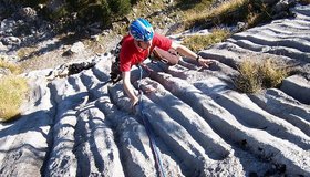 Wer den Fußabstieg wählt, findet mit einem 50 Meter Einfachseil das Auslangen.
