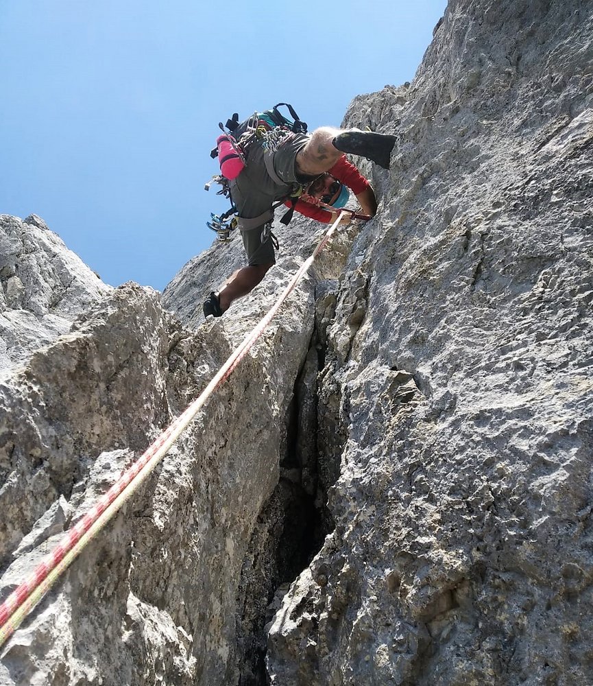 Sehr schöne und abwechslungsreiche kletterei in gutem Fels. Gut absicherbar mit Friends und Keile. Plus 23 BH stecken in der Tour.