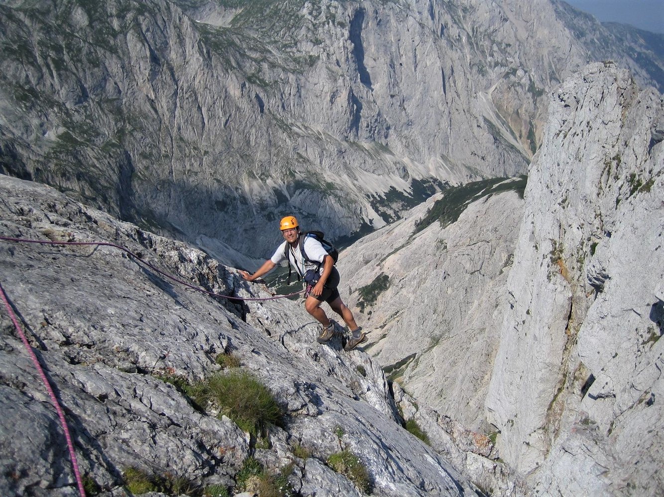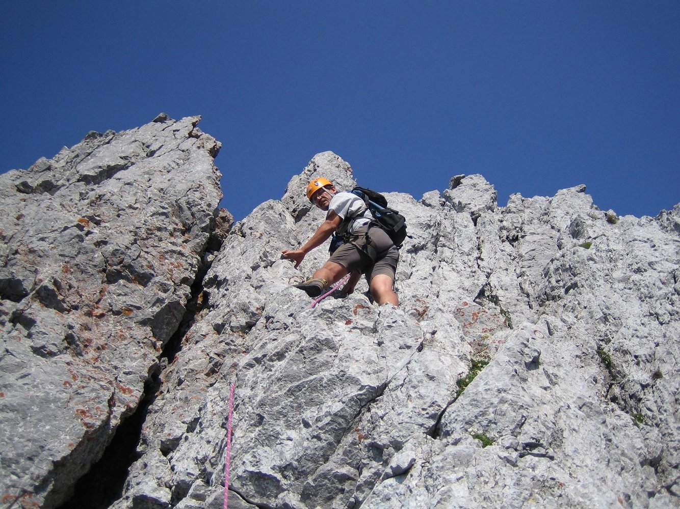 Wer den Westlichen Edelspitz (3) ausläßt und die nächste Spitze rechts umgeht, kommt mit 2+ durch. (siehe Topo!)
