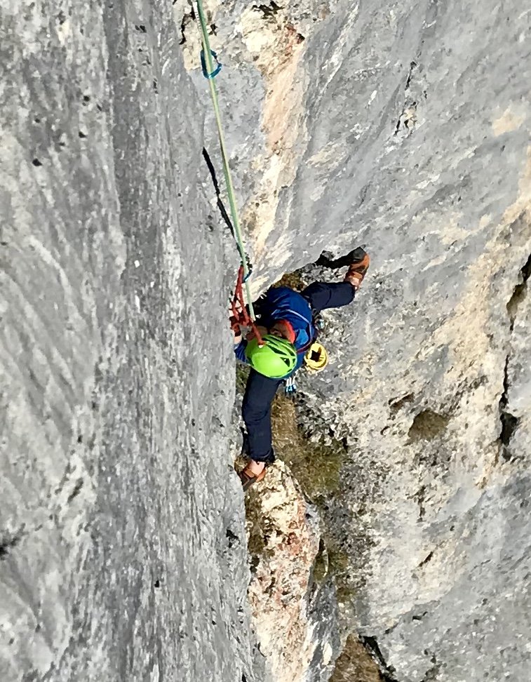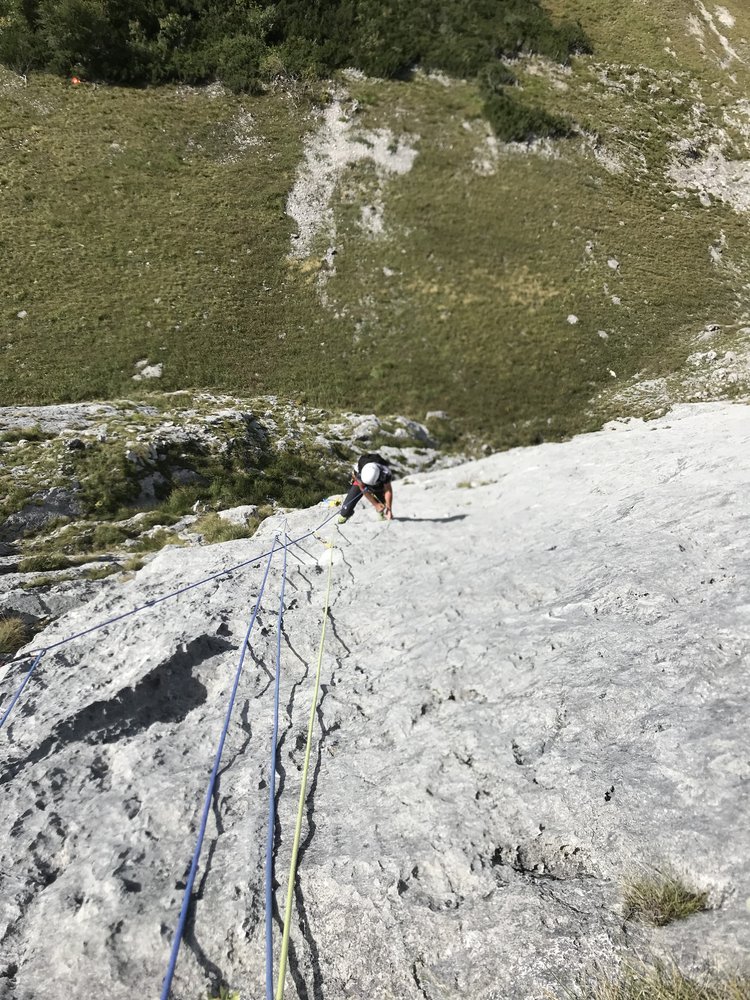 2 SL: 40 m 8+, Leicht überhängender sehr anstrengender Piazriss...