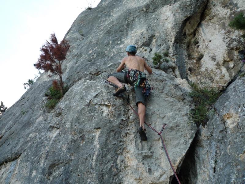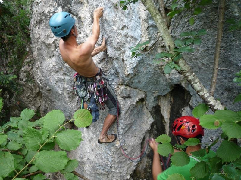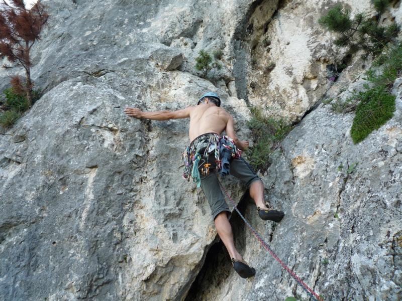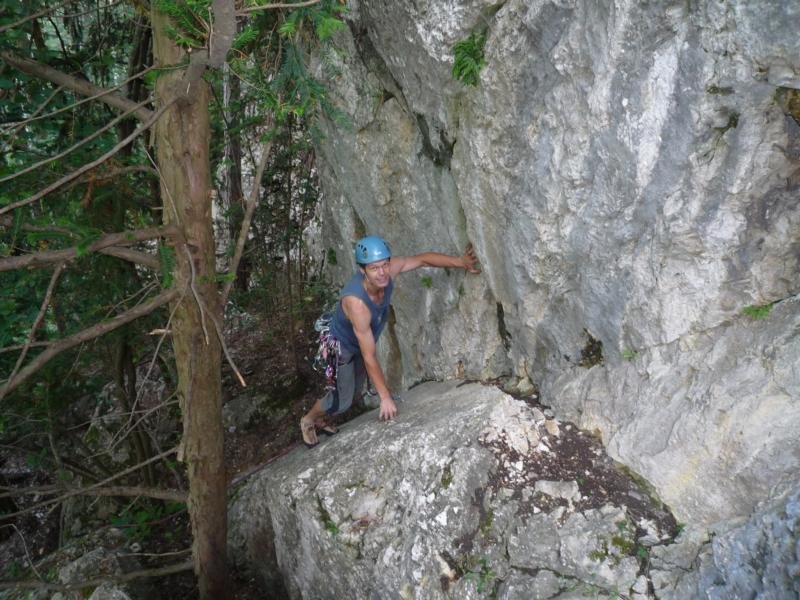Neue Genusstour von Brigitte und Walter Dolezal an der Pyramide, einem vergessenen Felsturm unmittelbar links vom Leiterlsteig. Die Tour ist im Mittelteil noch etwas abkletterbedürftig, zeichnet sich aber auch durch schöne Felsstellen aus.