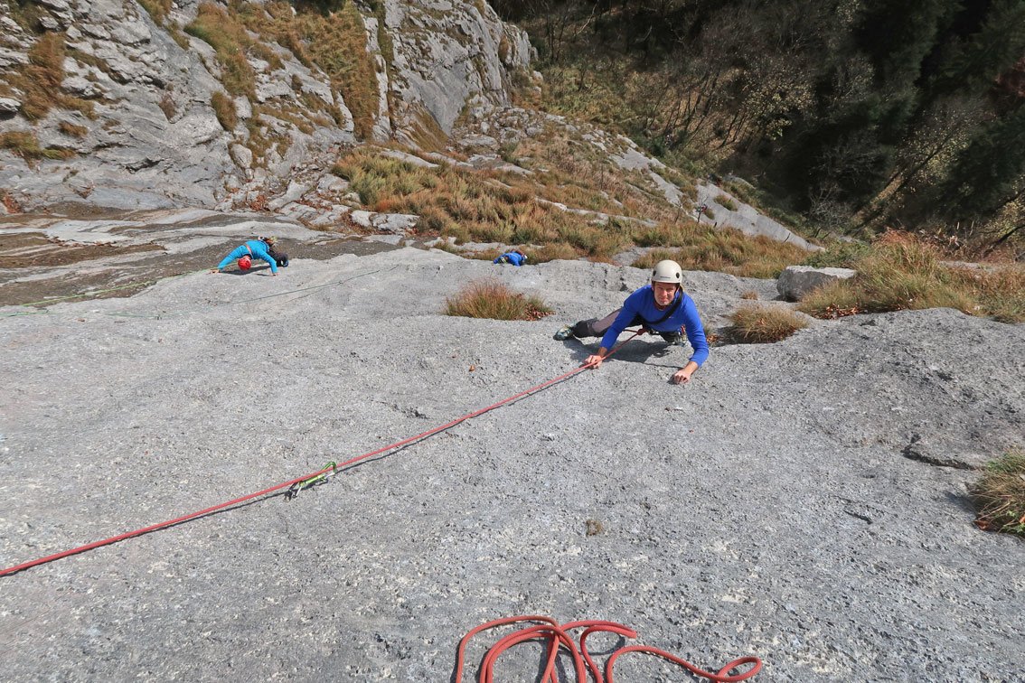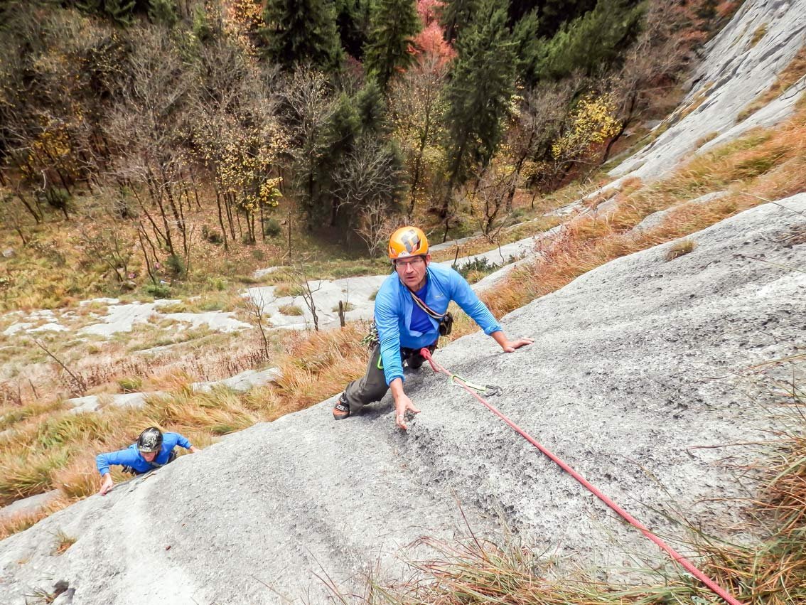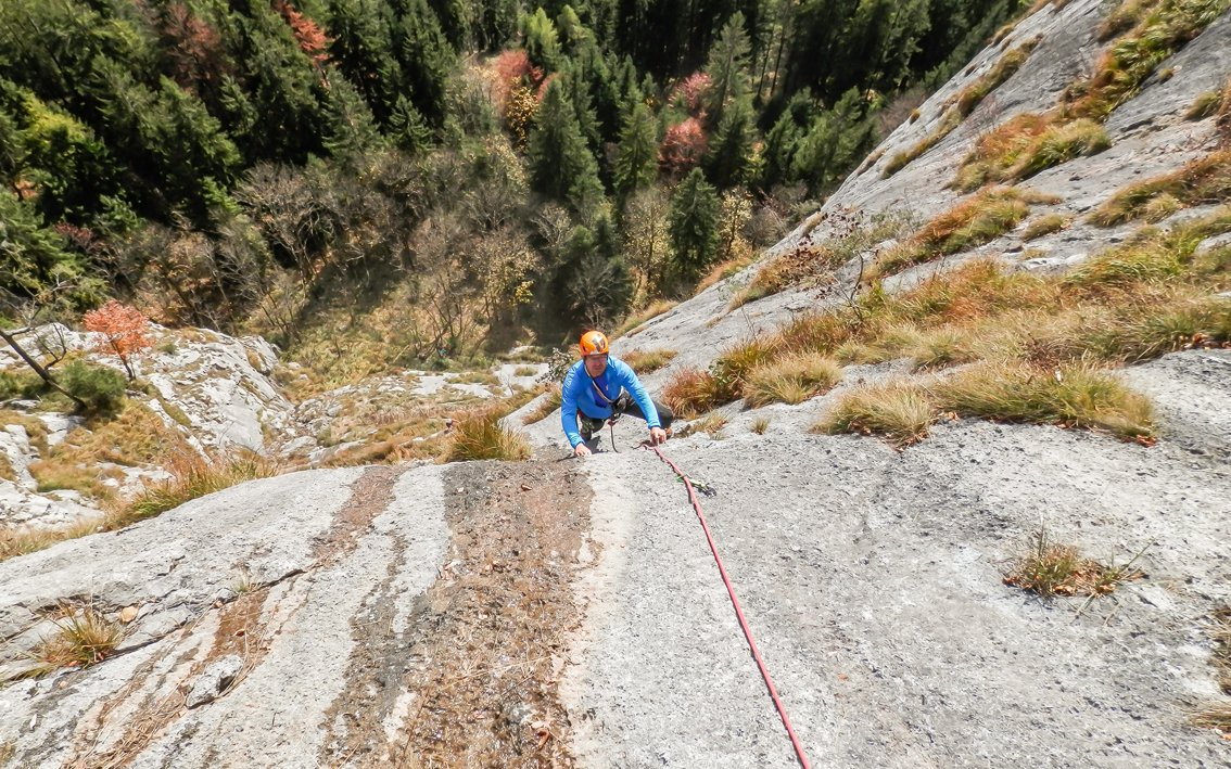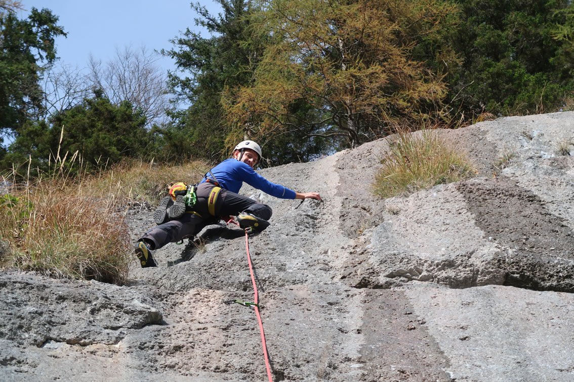 Perfekte Platten-Plaisirroute im rechten Wandteil der Unteren Diesbachwand. Tolle raue Platten weisen einem den Weg entlang von in vernünftigen Abständen gesetzten Bohrhaken. Die steile Platte im Mittelteil ist wie auch bei den Nachbartouren top zu klettern (der Stand nach der Platte ist etwas links). Oben dann über schöne Ausstiegslängen zum großen Felsblock, von dort steigt man schnell zu Fuß hinunter zum Einstieg und hängt die "Ethikkommision" oder die "Heute schon geduscht" an.