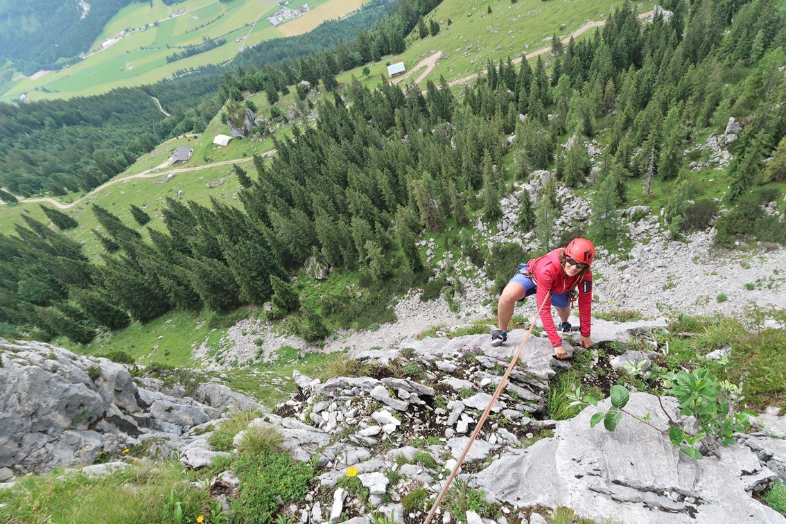 Sehr beliebte 6er Mehrseillängentour oberhalb der Wegmeteigen Alm. Griffige Platten, steile Verschneidungen und Risse leiten einen an der Südwand nach oben. Am Ende seilt man direkt über die Tour ab - also ein perfektes Klettererlebnis mit wenig Aufwand. Wer an den Yaks bei der Wegmeteigen Alm nicht schon prosive überrascht wird, ist das spätestens beim tollen Fernblick in die Hohen Tauern.