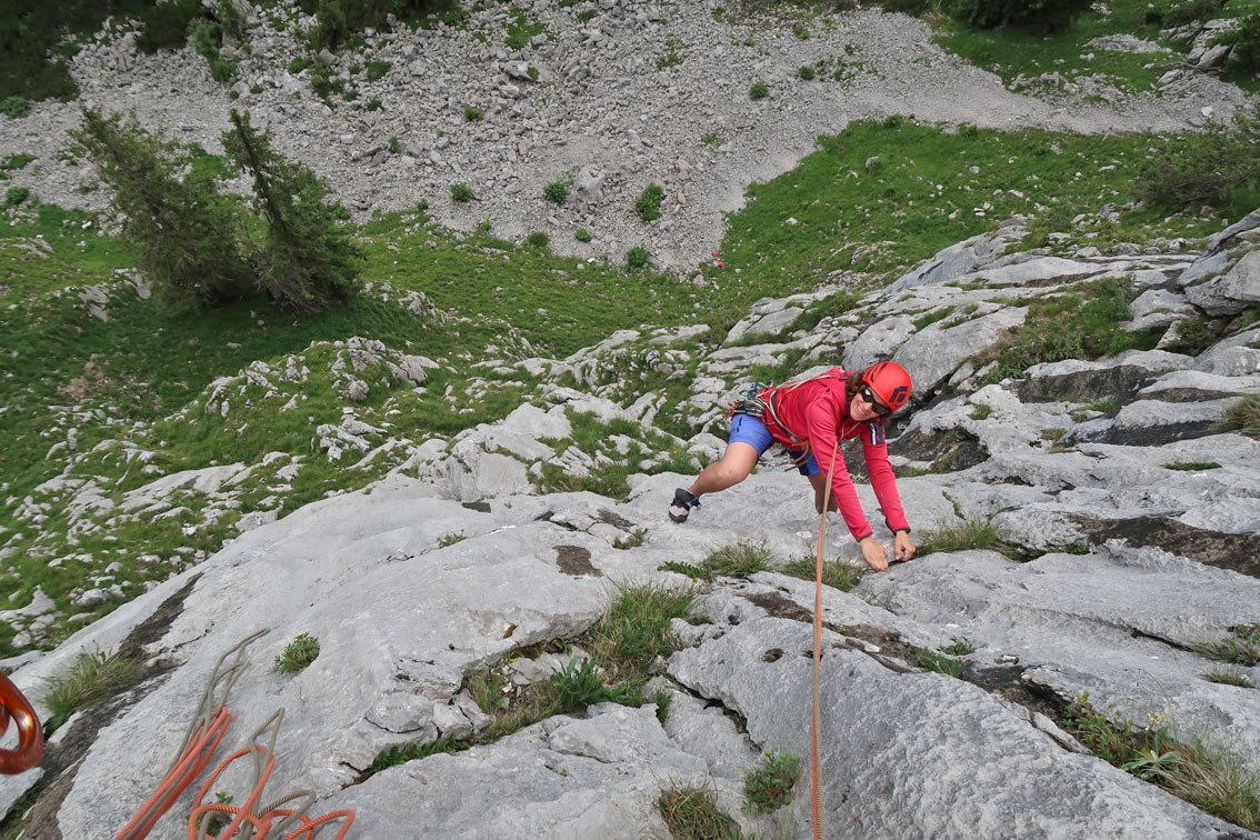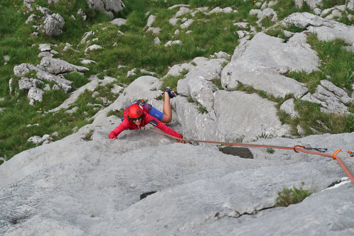 Die Tour ist gut abgesichert, in den letzten zwei Seillängen stecken die Haken aber etwas weiter auseinander (kein Plaisir!).