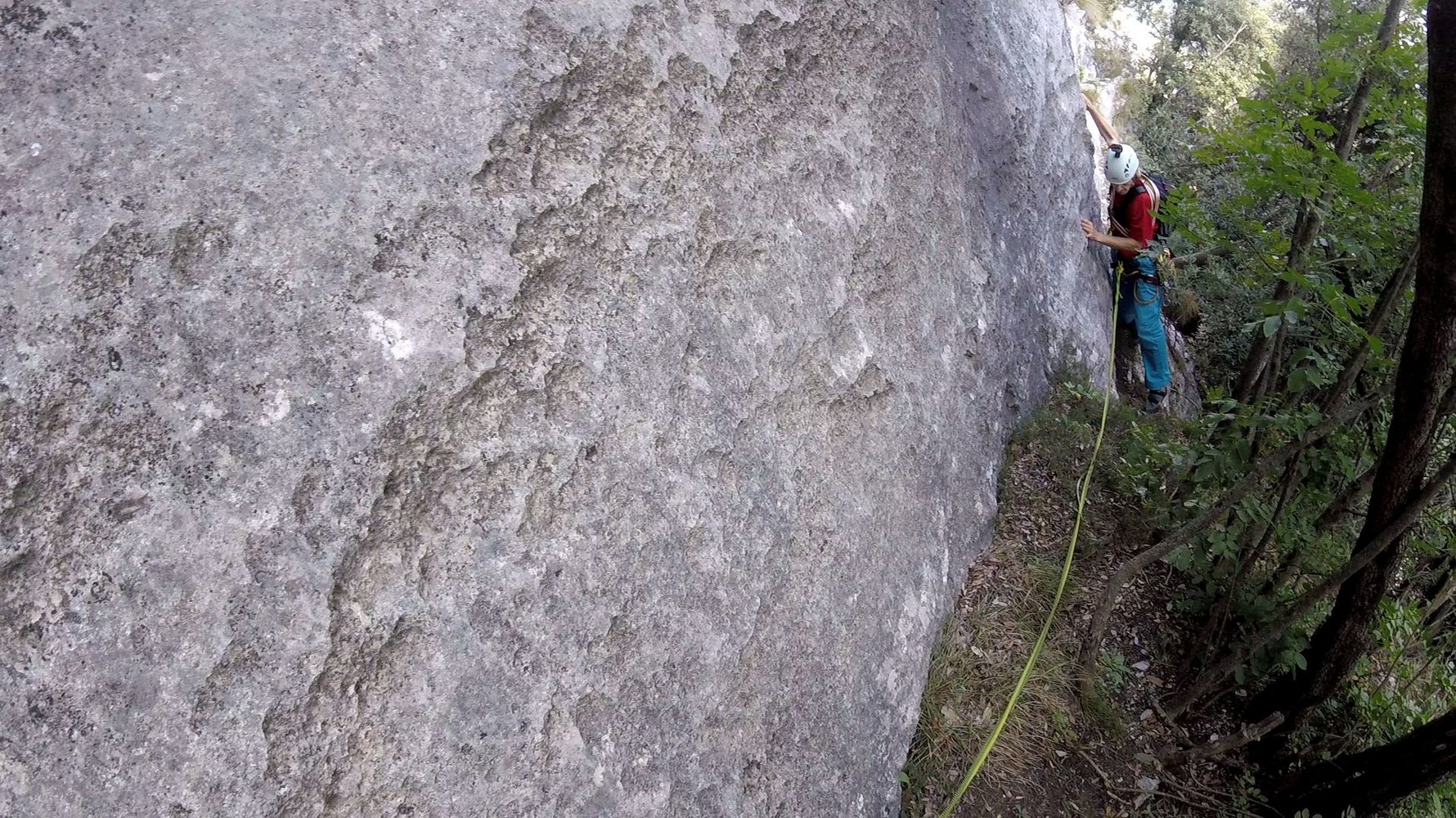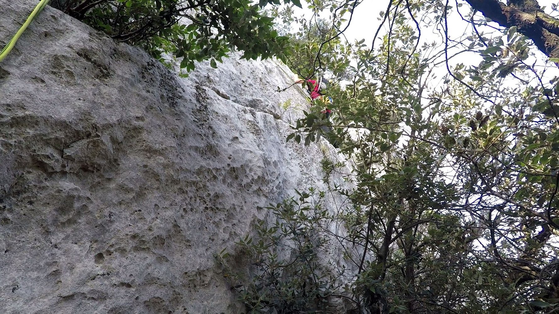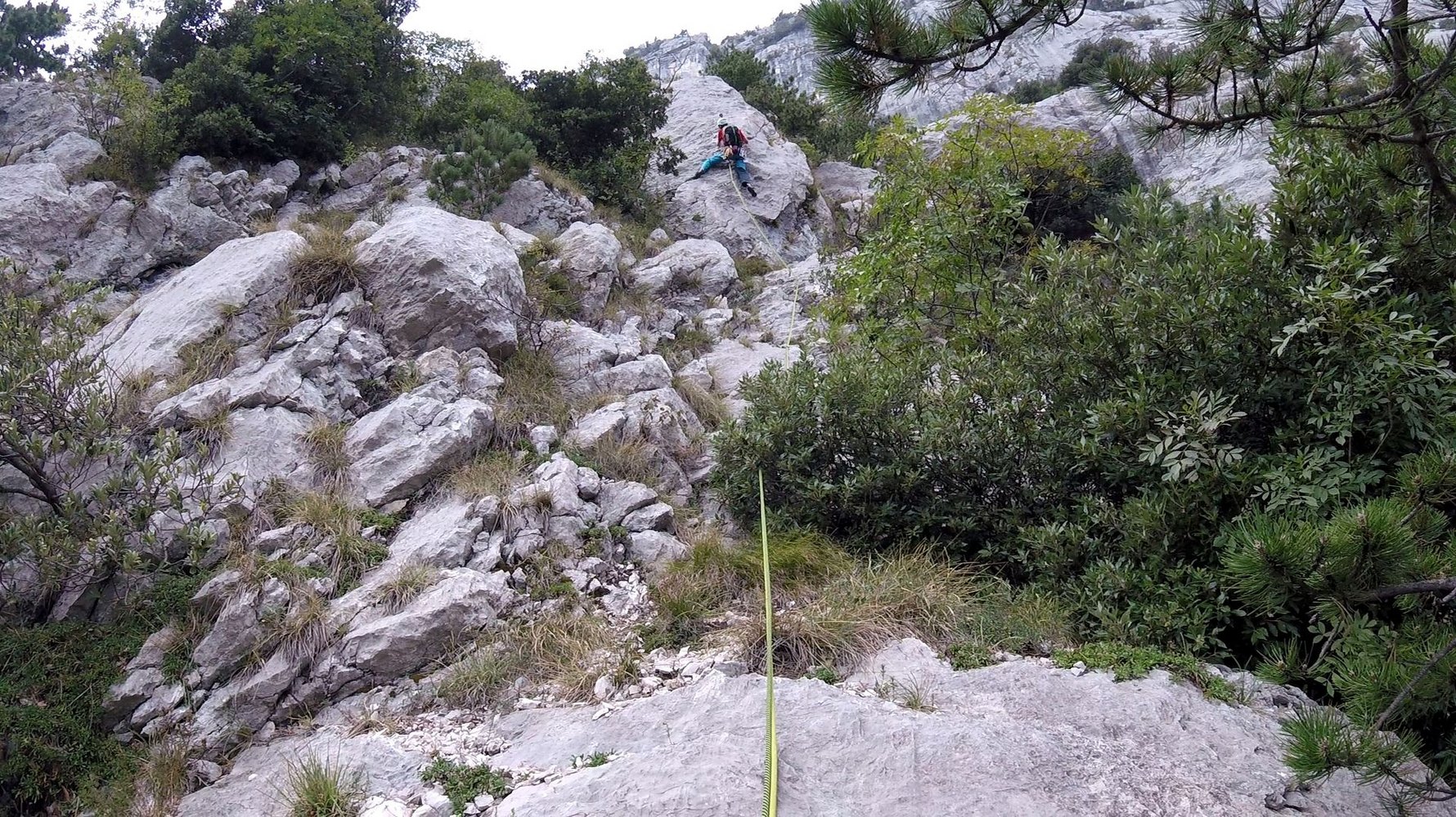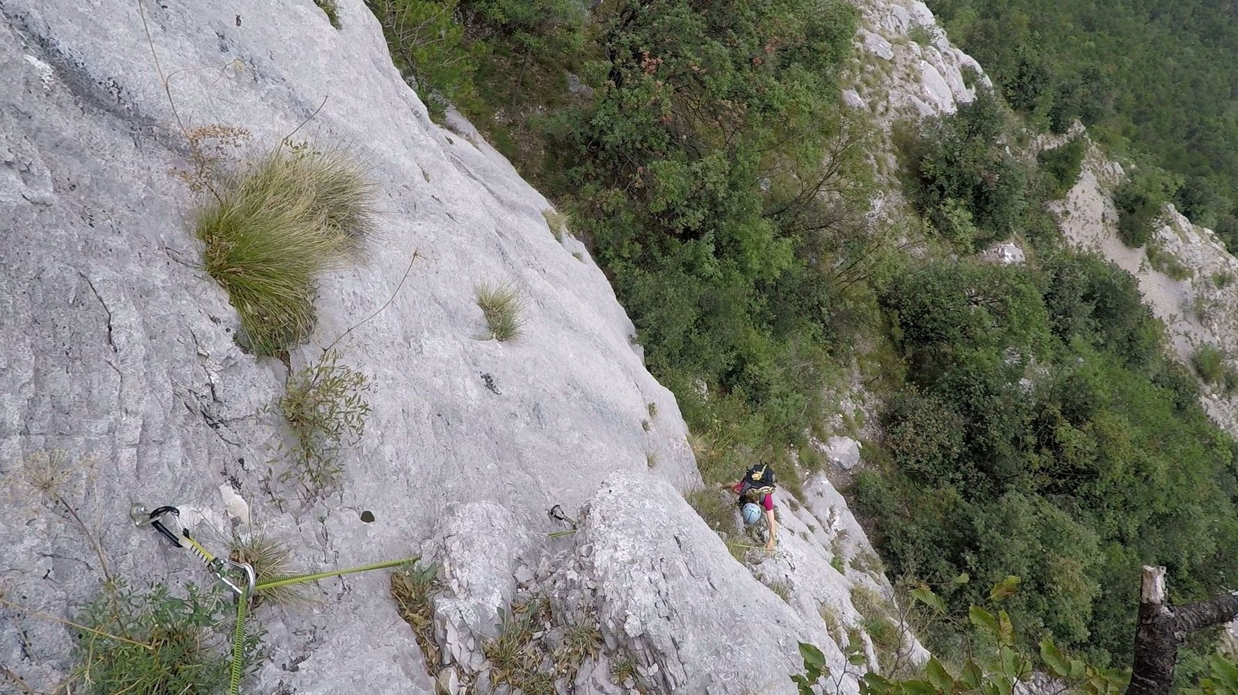 In der Seillänge vor der Schlüsselseillänge ist der Fels nicht ganz fest, es stecken aber wirklich viele Bohrhaken.
