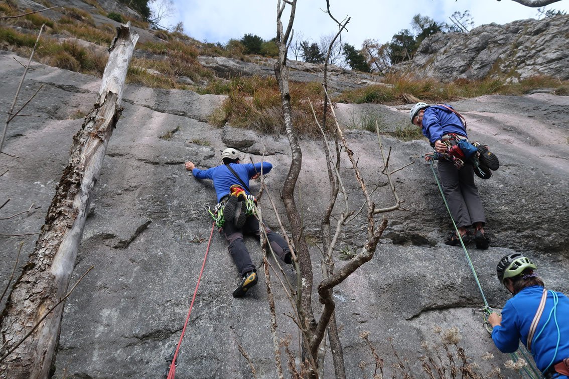 Die Touren sind nach Schneeschmelze und Regen längere Zeit nass. Am besten zwei trockene Tage abwarten. Man kann die Lage bereits vom Parkplatz einschätzen. Ein vielfältiges Betätigungsfeld für einen ausgefüllten Klettertag.