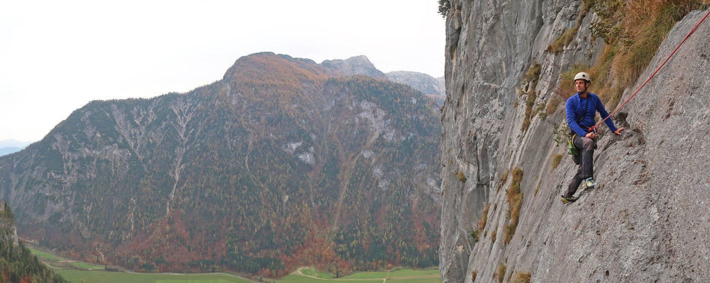 Die mittlere der eng beieinander liegenden Plattenrouten aus dem Hause Amann/Brüderl. Eine Plaisirkletterei der Extraklasse - rauer Fels auf dem man an steilen Platten höher steigt. Vor allem die dritte Seillänge bietet perfekte, raue Plattenkletterei! Die Tour ist gut mit den anderen Touren daneben (siehe Topo) zu kombinieren. Genug Betätigungsfeld und ausreichend Bohrhaken für einen lohnenden Klettertag zwischen Lofer und Saalfelden.