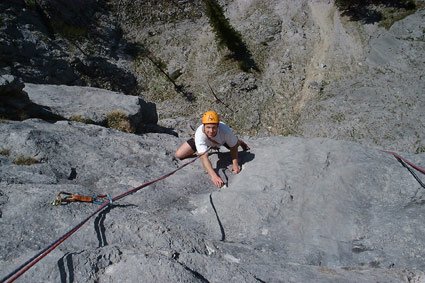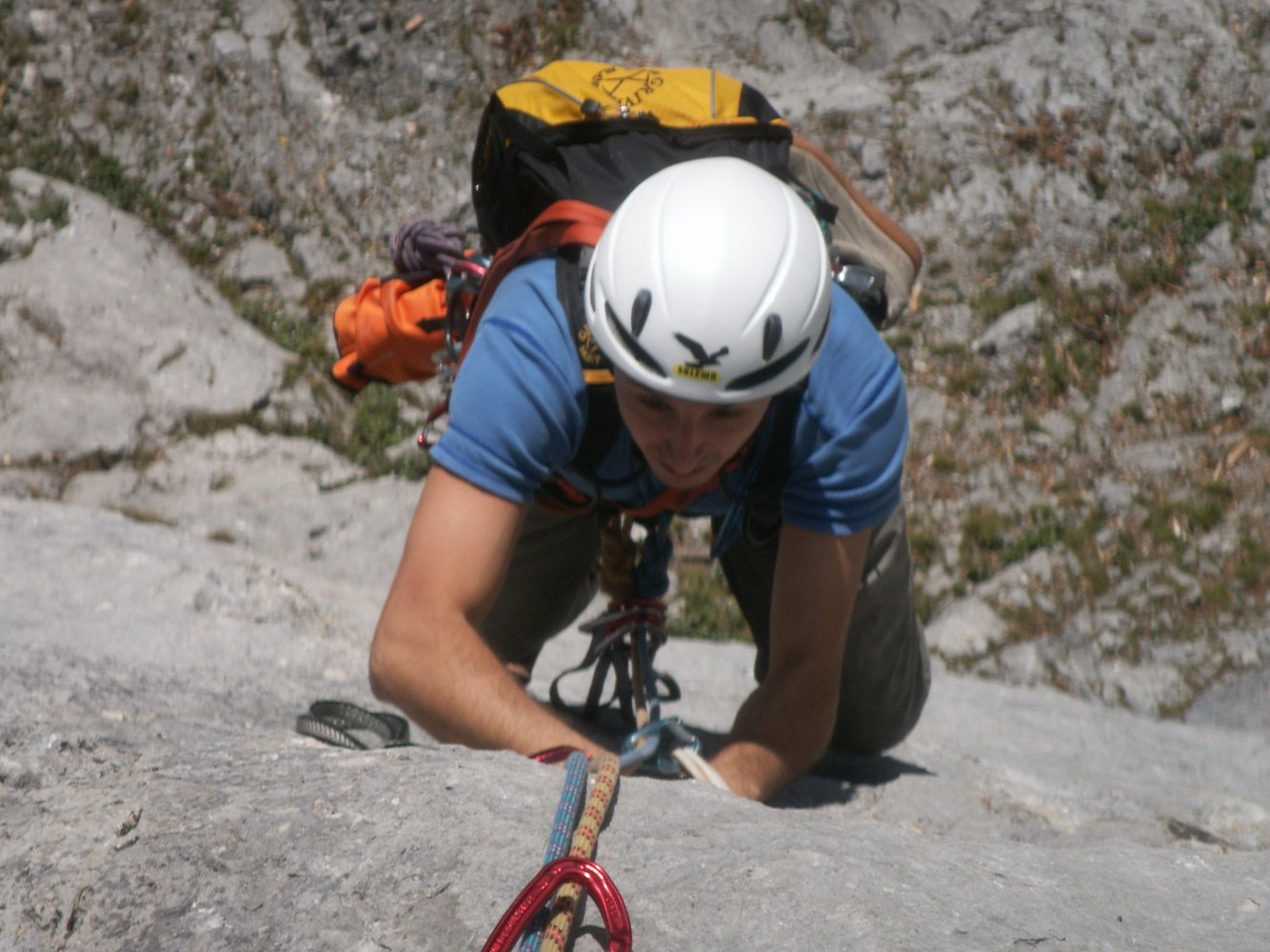 Doppelseil 55 m oder 70m Einfachseil, 15 Expr., ein Satz Rocks, mittlere Friends und HELM! nicht vergessen!
