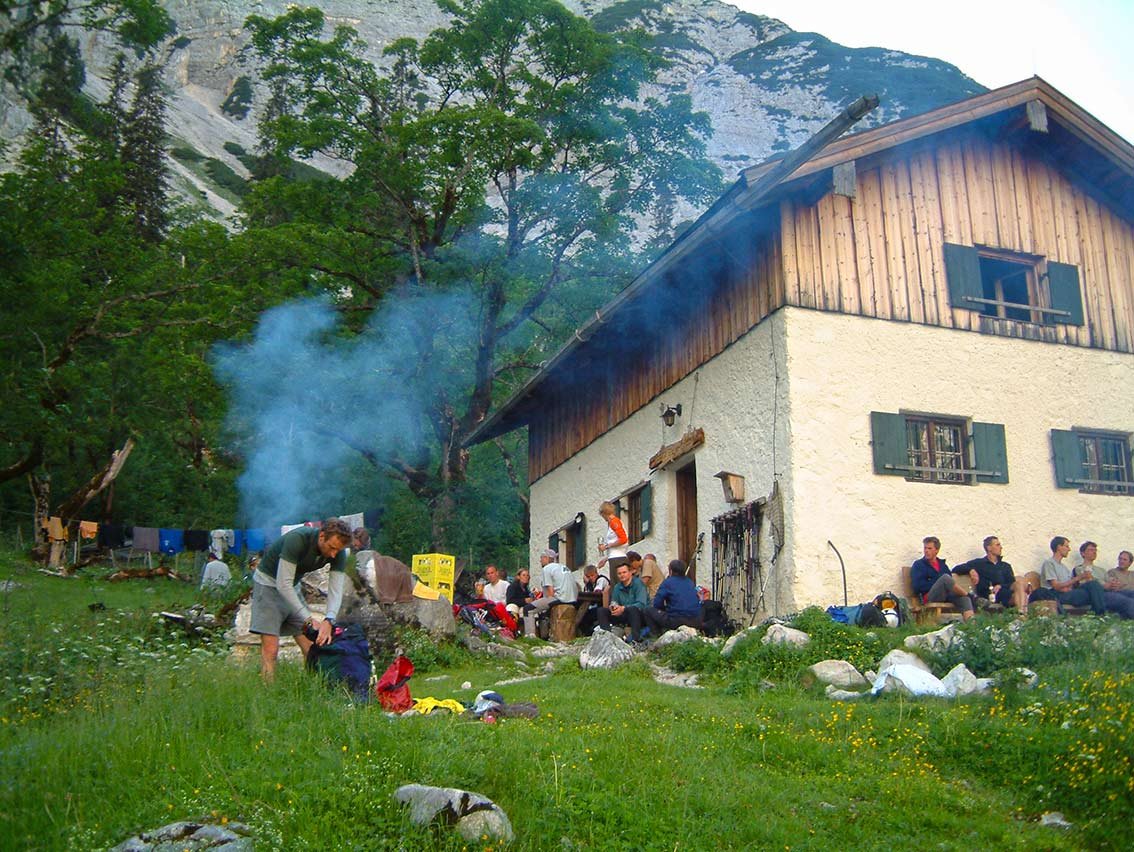 Die Oberreintalhütte ist eine urige Kletterhütte in grandioser Umgebung - Klettergarten in Hüttennähe. Außer Getränke gibt`s nichts – also selbst versorgen...(Essen wird vom HWgegen einen kleinen Obolus zubereitet). Die Hütte ist am Wochenende eine reine Klettererhütte!!!
