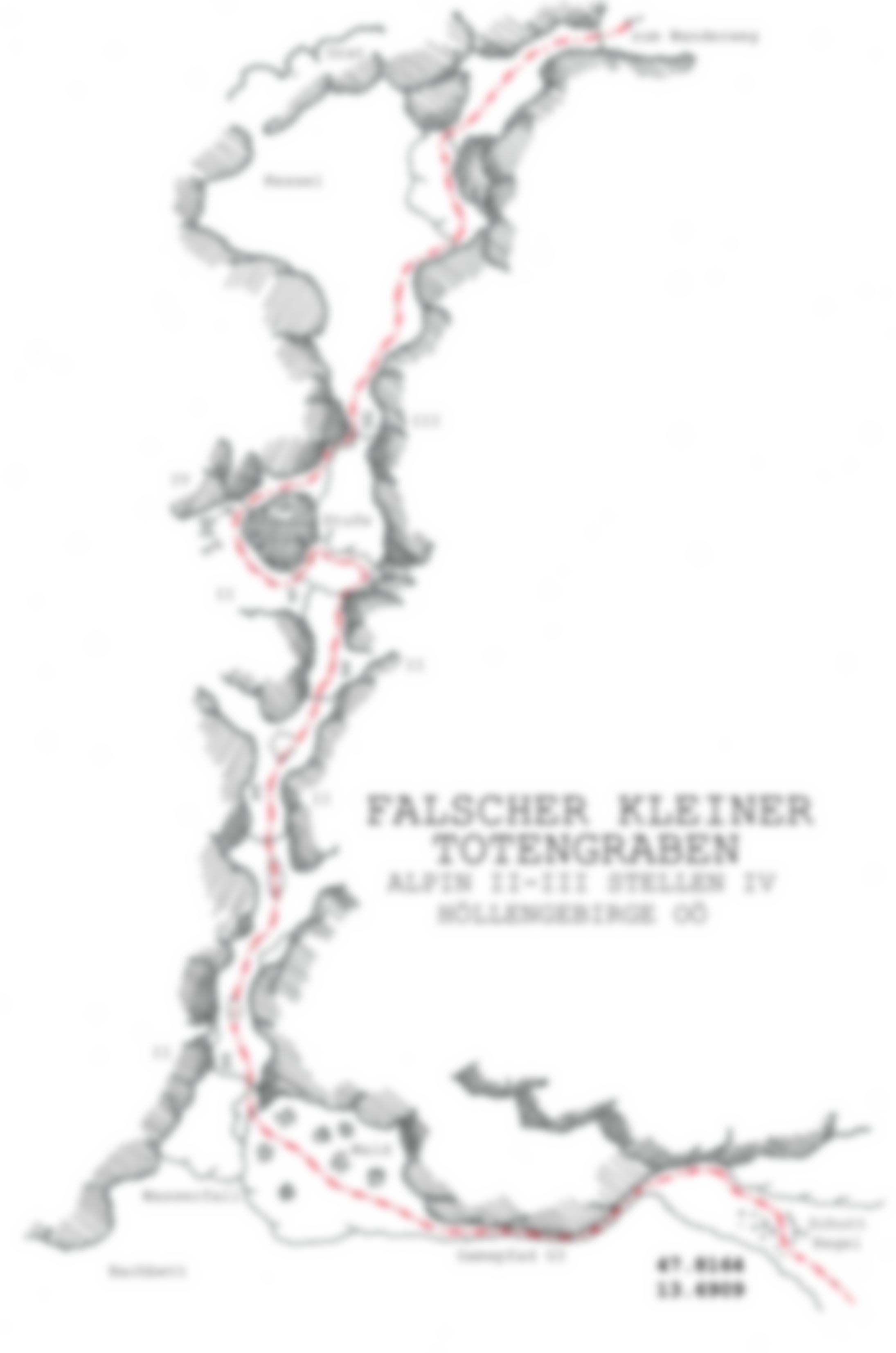 Zustieg wie zum großen Totengraben. Bei Beginn der Schuttkegel nach links abzweigen und zum Einstieg bei 47.8164 13,6909.