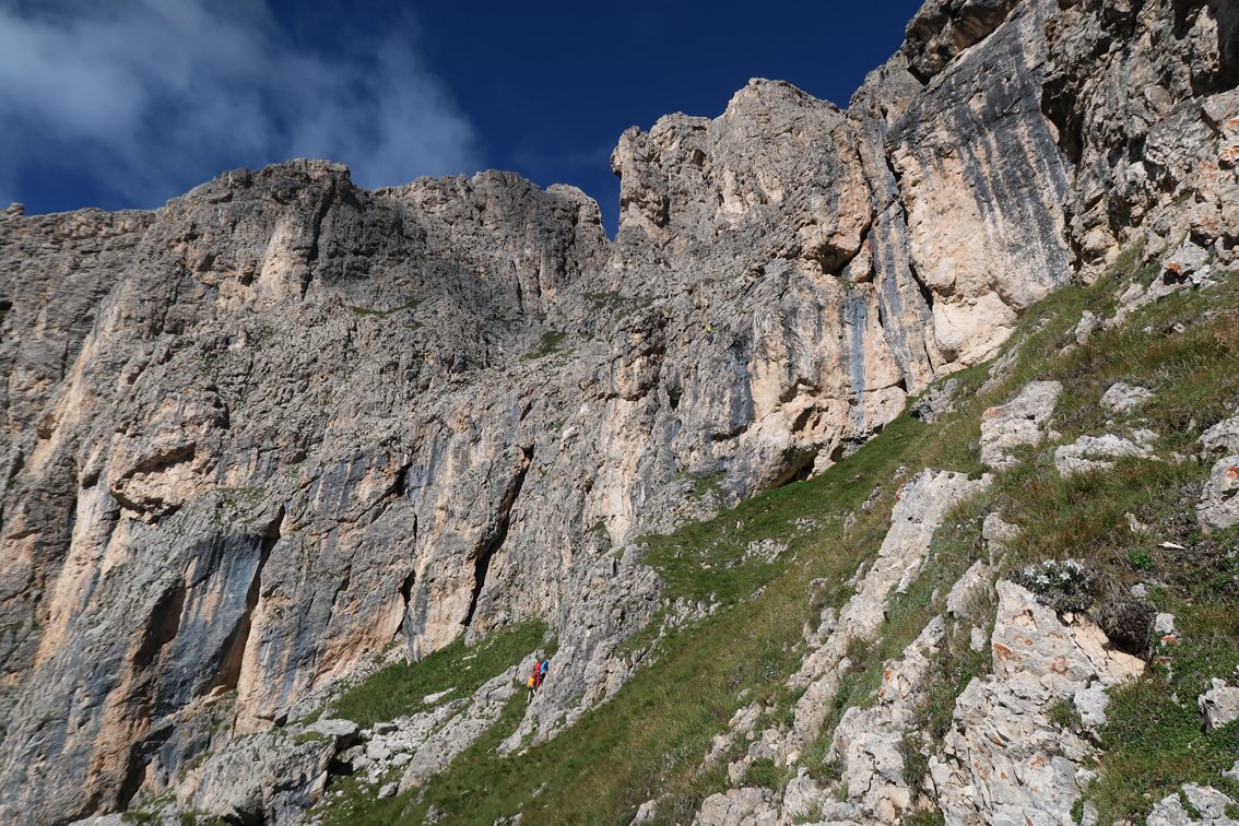 Alpin abgesichert - nur wenige Zwischenhaken vorhanden.