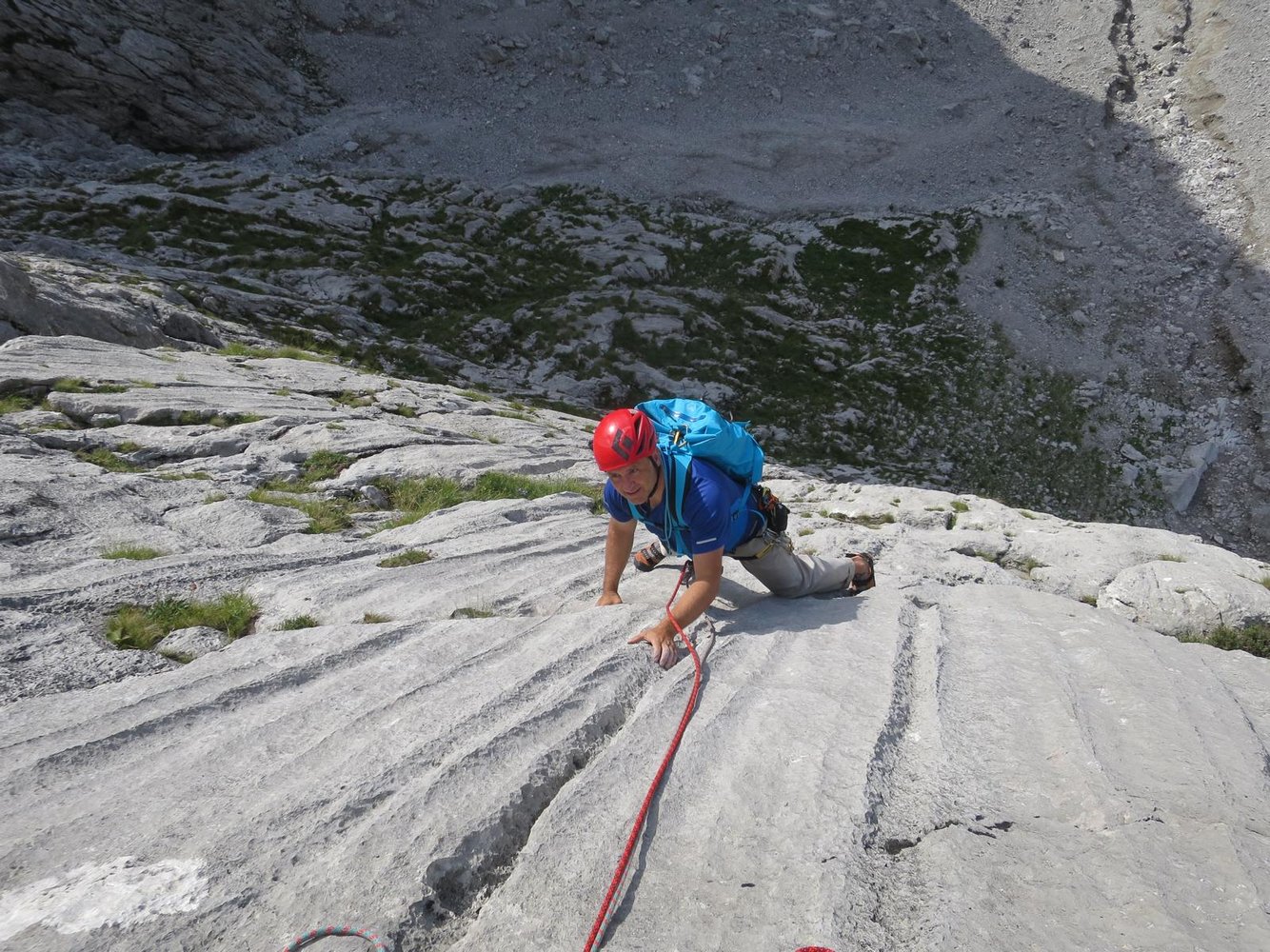 Interessante Tour am Festkogel Vorbau. Bei der Crux zu Beginn der 2. Seillänge gibt es eine Bohrhakensicherung, sonst wie am Vorbau gewohnt sehr weite Abstände. Die Tour kann gut als „Zustieg“ zur Festkogel-Südwestwand oder als eigenständige Kurzkletterei gemacht werden.