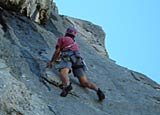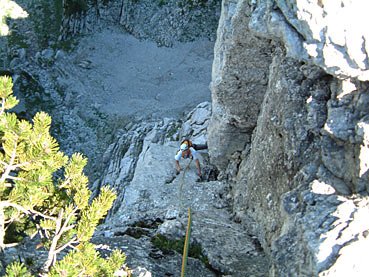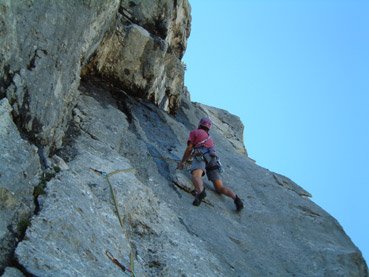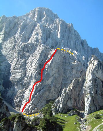 Tolle und auch extrem gut abgesicherte Plaisirroute in der Nähe des Stripsenjochhauses. Es dominiert Wand- und Verschneidungskletterei im besten Fels. Der Fels ist großteils fest und in den letzten beiden Seillängen wasserzerfressen. Dort kann er auch stellenweise etwas nass sein, was aber kaum stört. Die Schwierigkeiten sind auf wenige Meter nach einer kaminartigen Verschneidung (Platte mit Riss) beschränkt. Eher etwas für den Hochsommer, durch die nordseitige Lage etwas schattig und nach längeren Regenfällen meist nass.