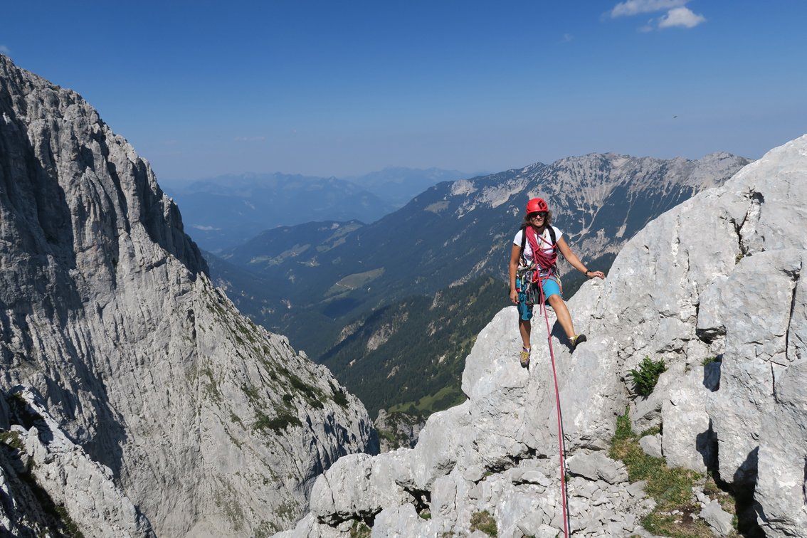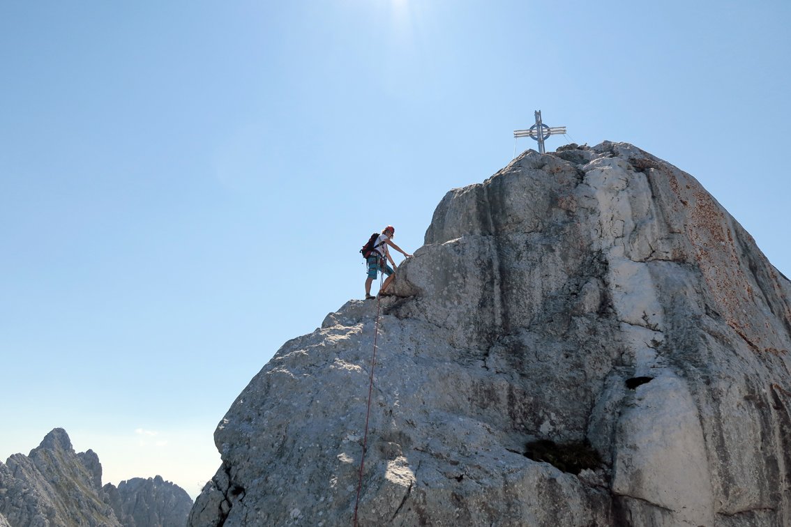 Der Nordgrat ist ein klassischer und sehr beliebter Anstieg auf die Fleischbank. Bis auf einige Seillängen im 3ten Grad (im unteren Teil und oberen Teil der Route) meist leichteres Gelände und auch sehr viel Gehgelände. Am Schluß wieder sehr schöne Kletterei auf dem Grat bis direkt zum Gipfelkreuz der Fleischbank. Schöner Ausblick auf die berühmten Felsabbrüche von Predigtstuhl und Totenkirchl, der Abstieg vom Ellmauer Tor auf dem Eggersteig runden dieses Kaiser-Klettererlebnis perfekt ab.