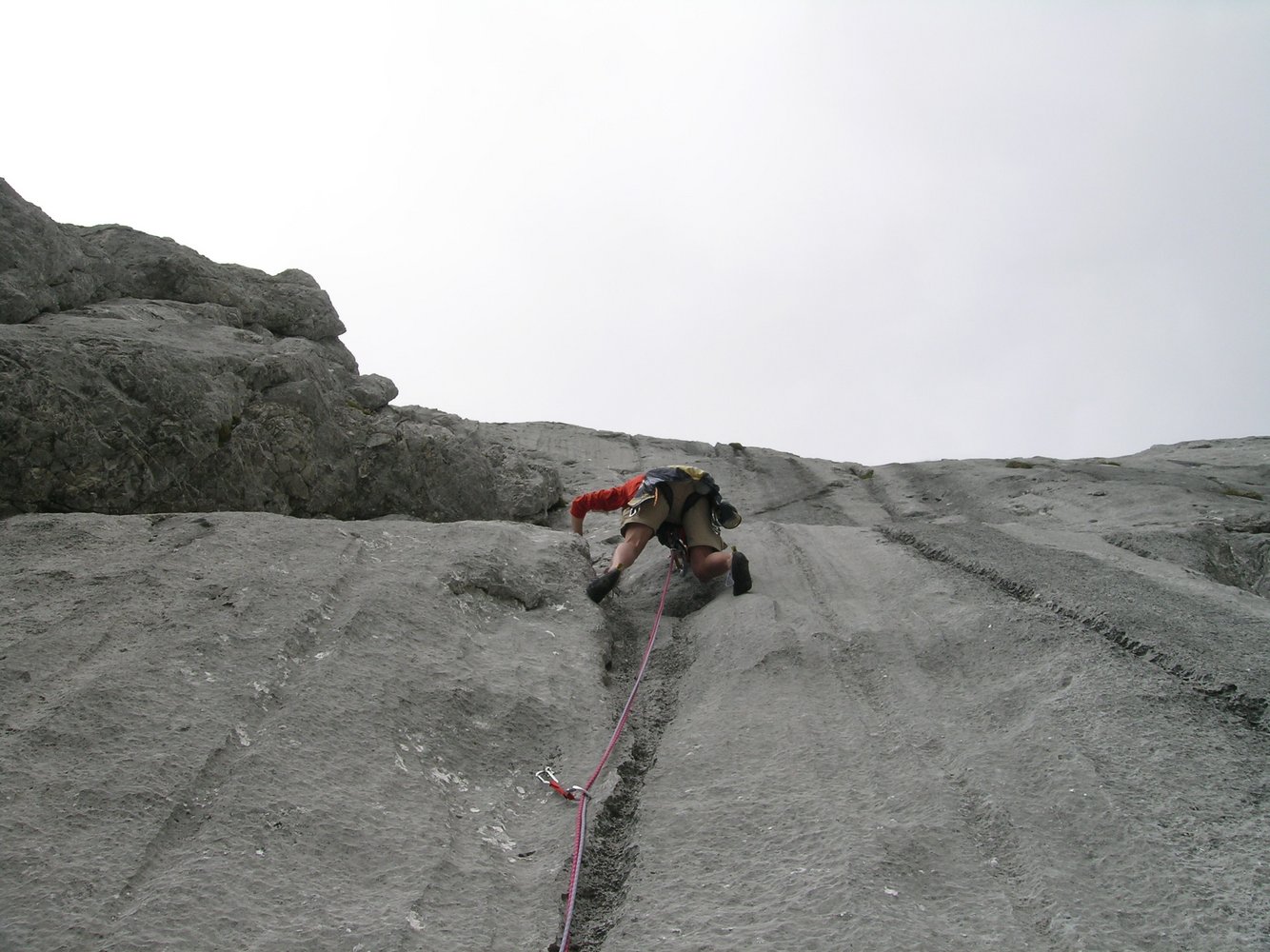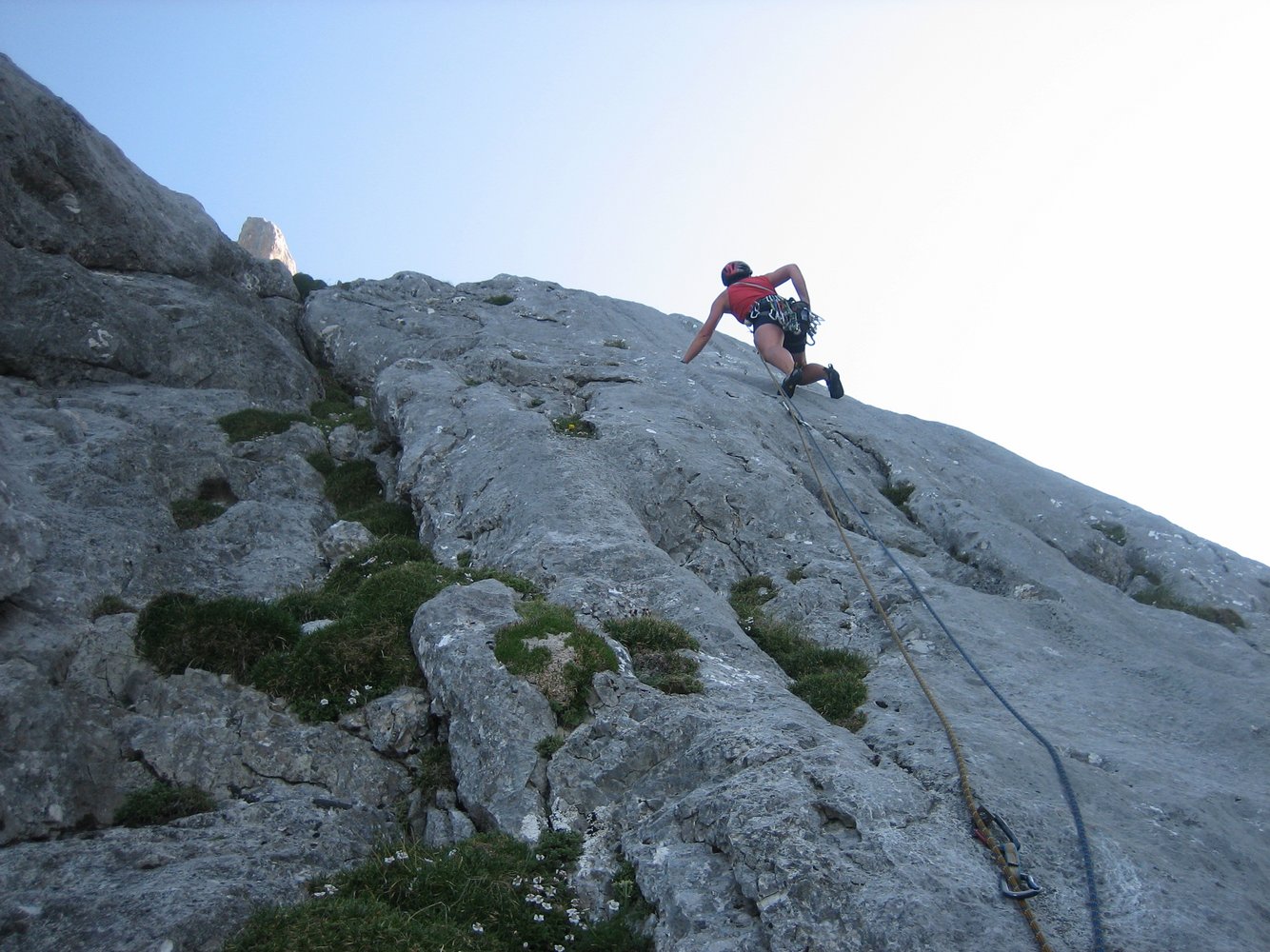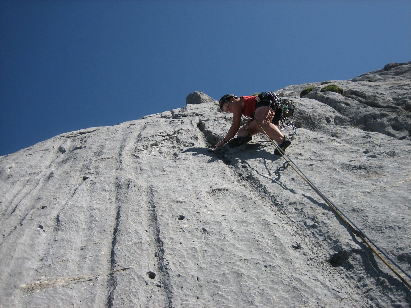 Gut mit Bohrhaken abgesicherte Plaisirkletterei auf geneigten Platten. Zwischen den Platten auch mal Schrofen. Für Anfänger geeignet. Sehr beliebte Route, schon mehrere hundert Wiederholungen.