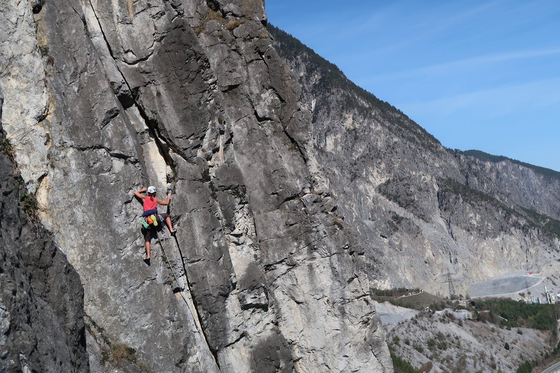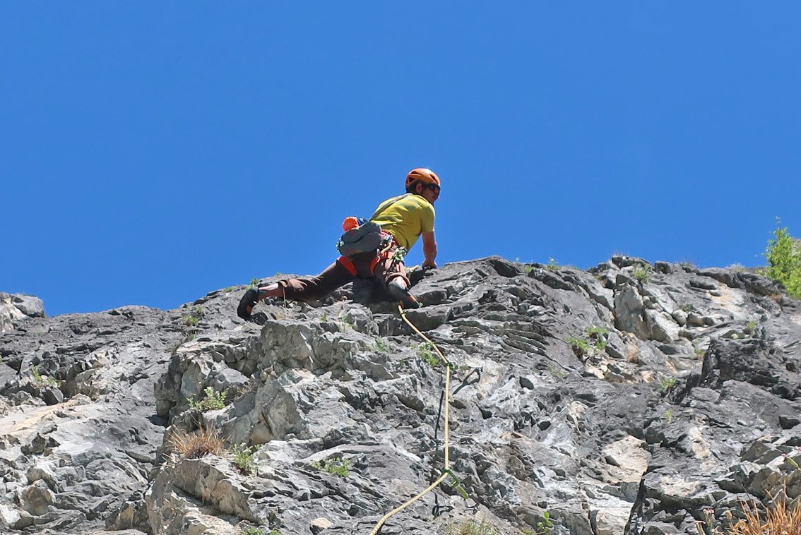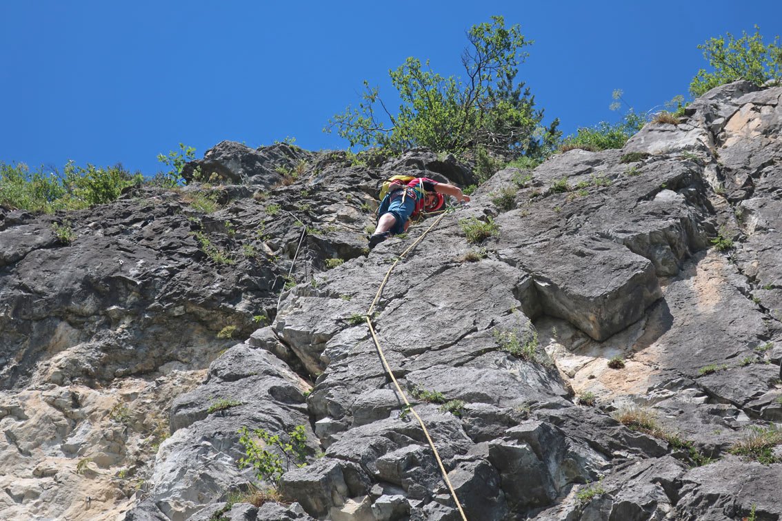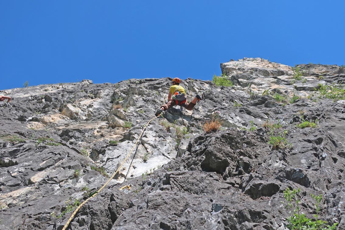 Die Tour wird oft begangen, Steinschlag durch oberhalb kletternde Seilschaften möglich.