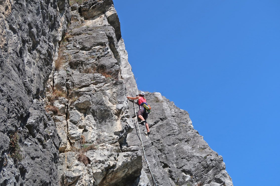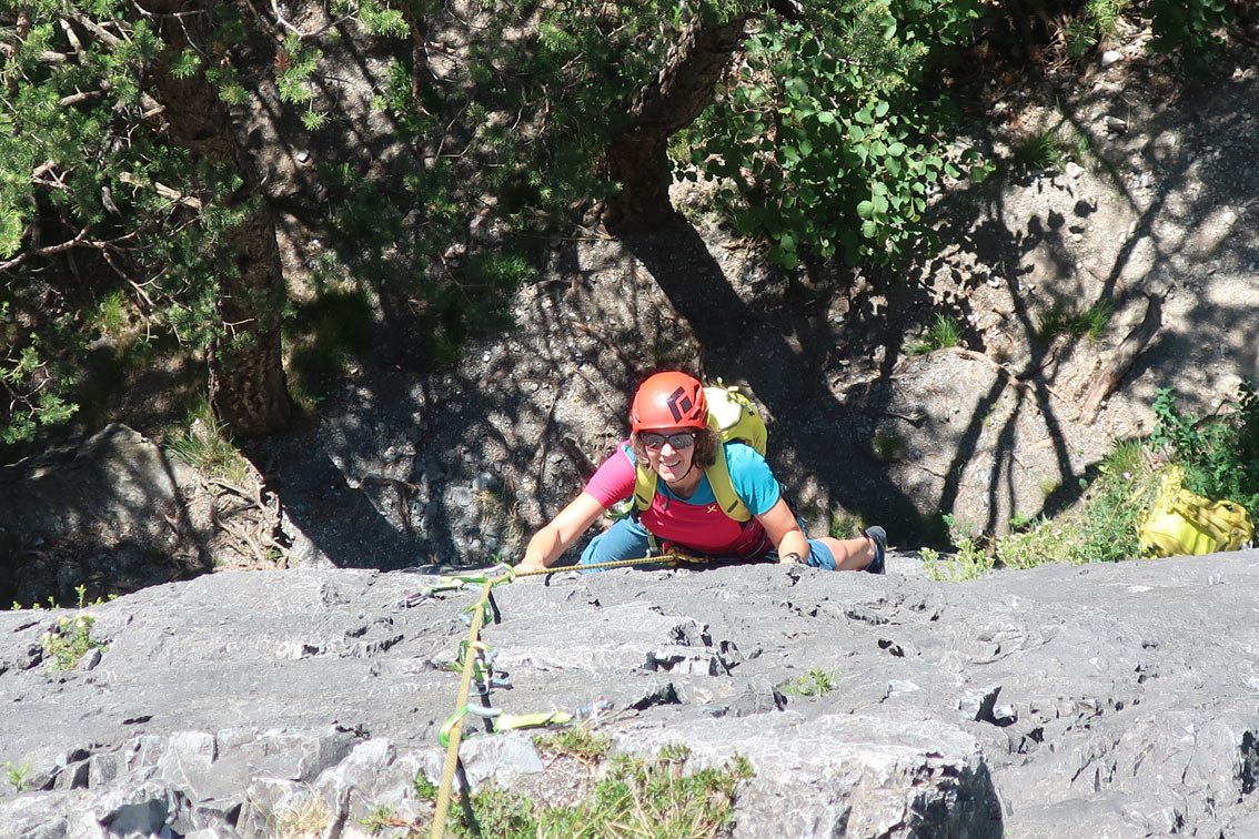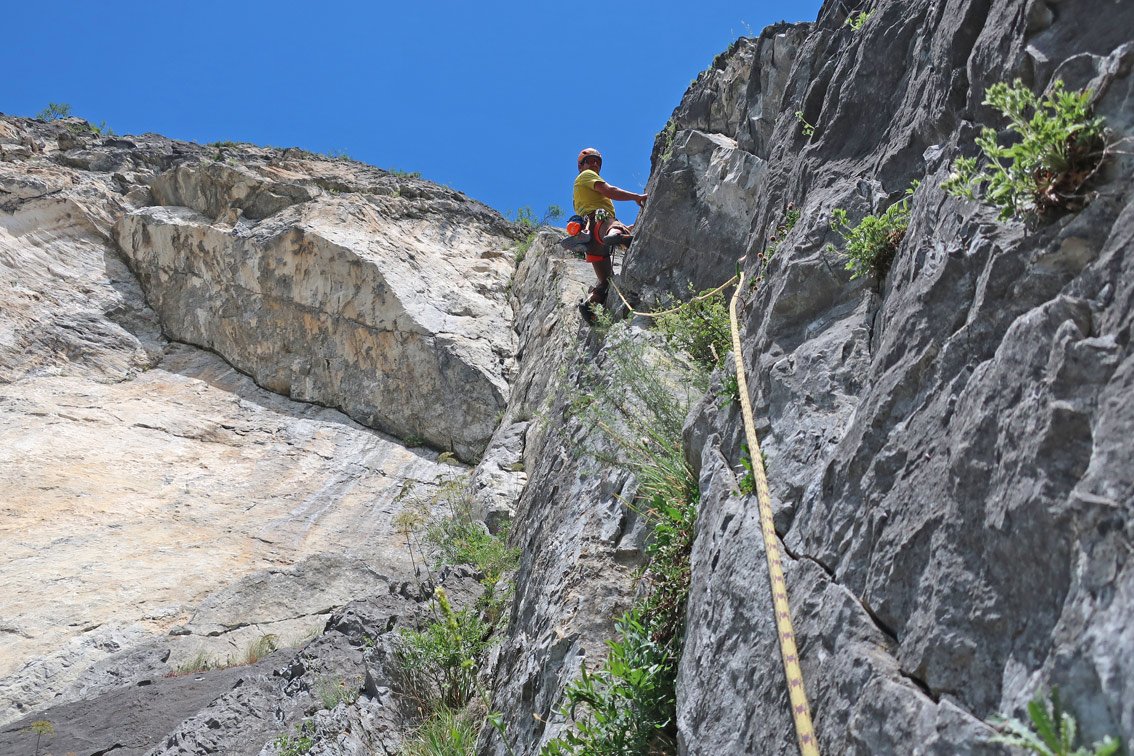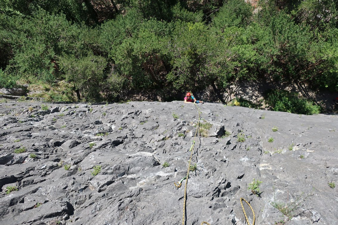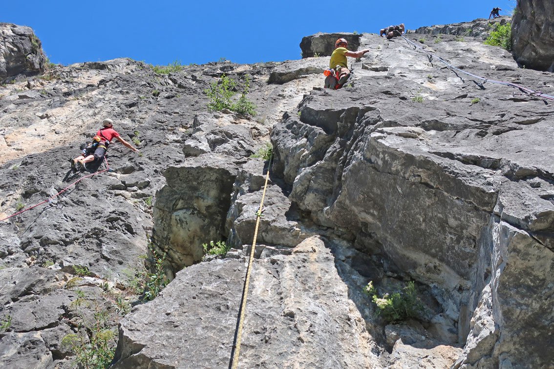 Die Tour wird oft begangen, Steinschlag durch oberhalb kletternde Seilschaften möglich.