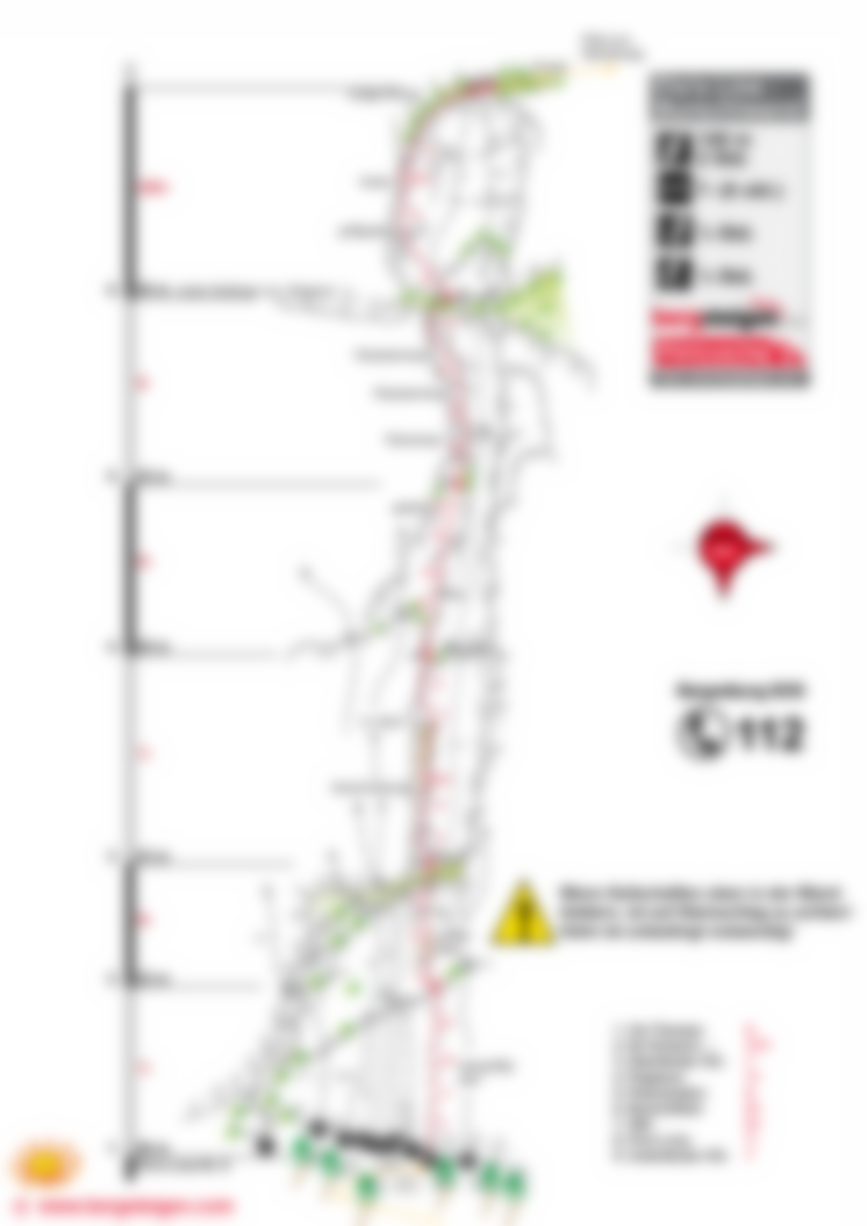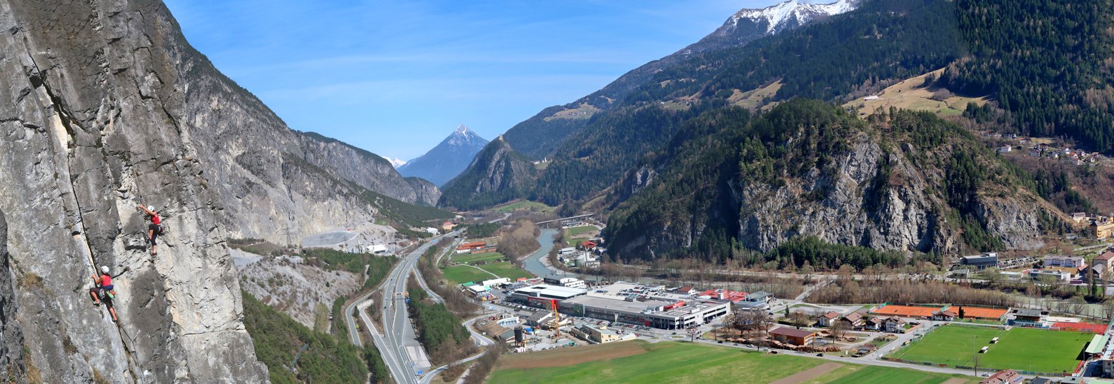 Vom Ausstieg dem Stahlseil nach rechts folgen, dann auf einem Pfad zum Wanderweg und auf diesem absteigen. Bei einer Abzweigung nach rechts, man kommt unter den Wandfuß und dort geht man über die Autobahn zurück zum Parkplatz.