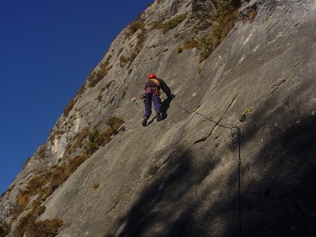 Die Route ist sehr gut mit Haken gesichert.
