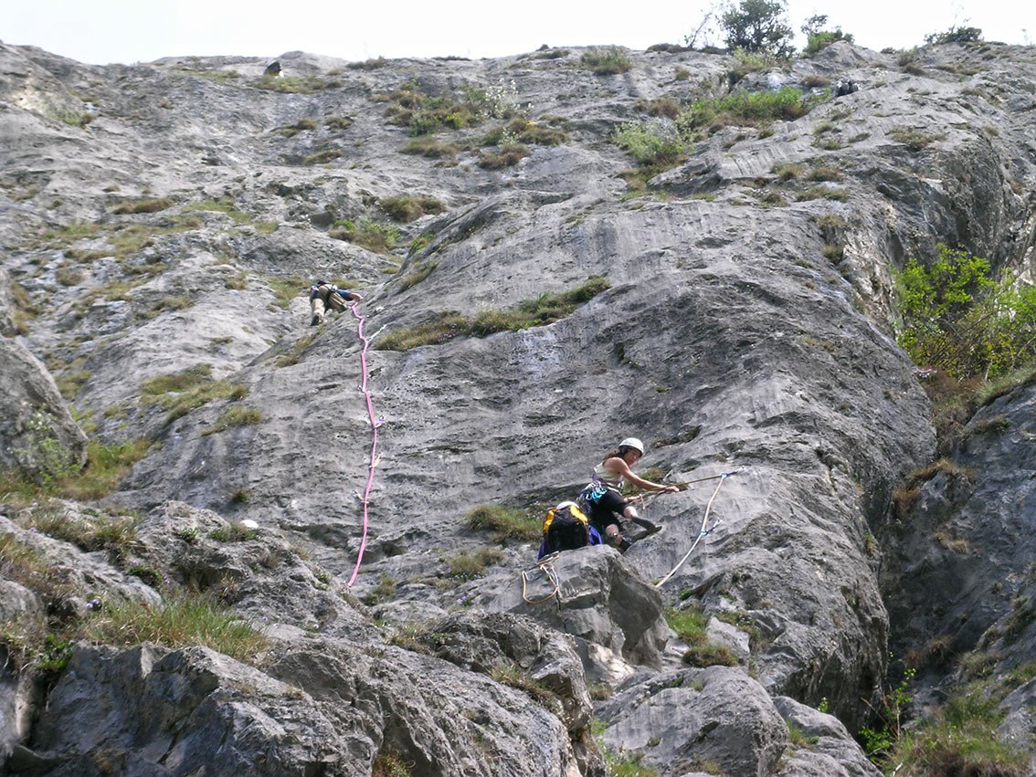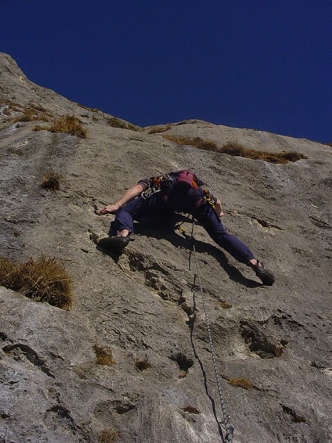 Die Routen sind ziemlich abgeklettert, deshalb ist die Bewertung auch etwas härter. Oft ist in diesem Sektor recht viel los. Den Helm sollte man auf dem Kopf haben - oben laufen viele Gämsen herum die Steine lostreten können und bei starkem Föhn fallen die Steine ohne Zutun die Wand hinunter.