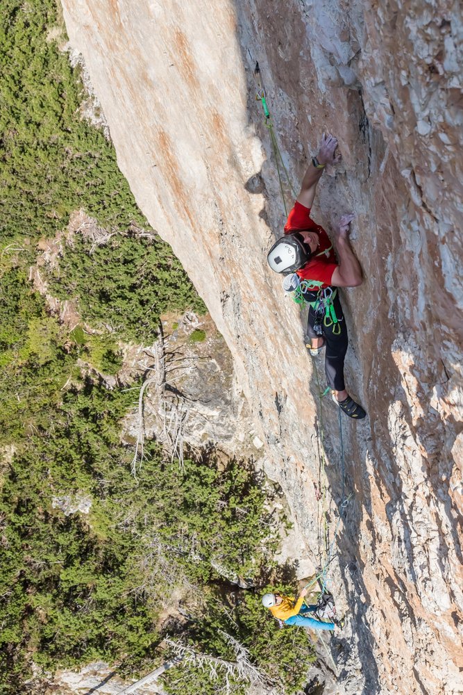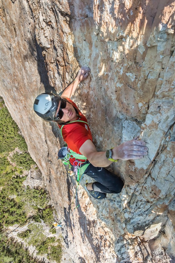 Überhängende, technische Kletterei an Leisten, Löchern und Rissen. Im zentralen Teil der Hinteren Geierwand, der bislang noch frei von Linien war, konnten wir eine neue Route eröffnen. Die Linie folgt einer klaren Rissspur, die sich durch überraschend guten Fels zieht. Die Kletterei ist durchgehend überhängend und abwechslungsreich, fordert Technik und Ausdauer.