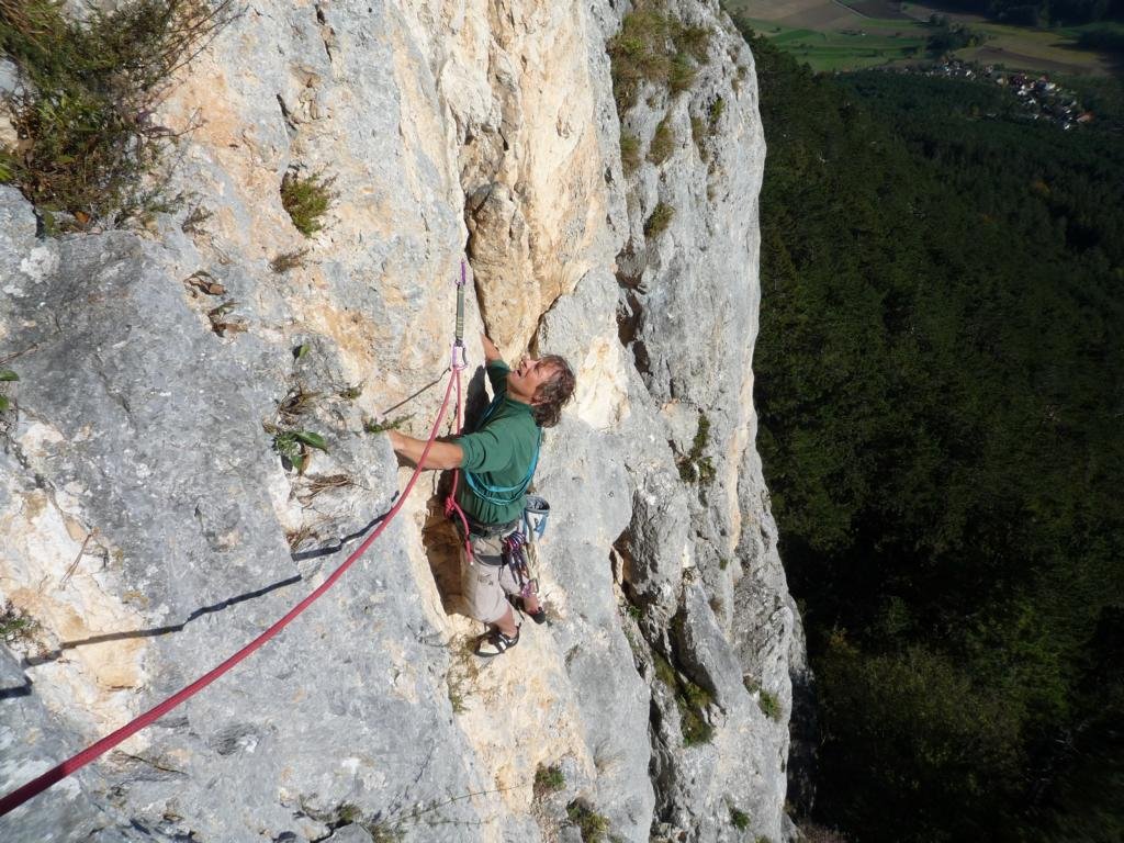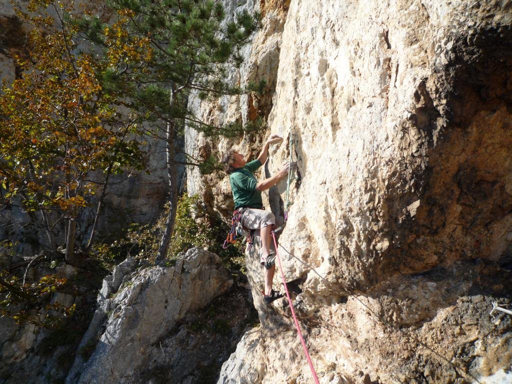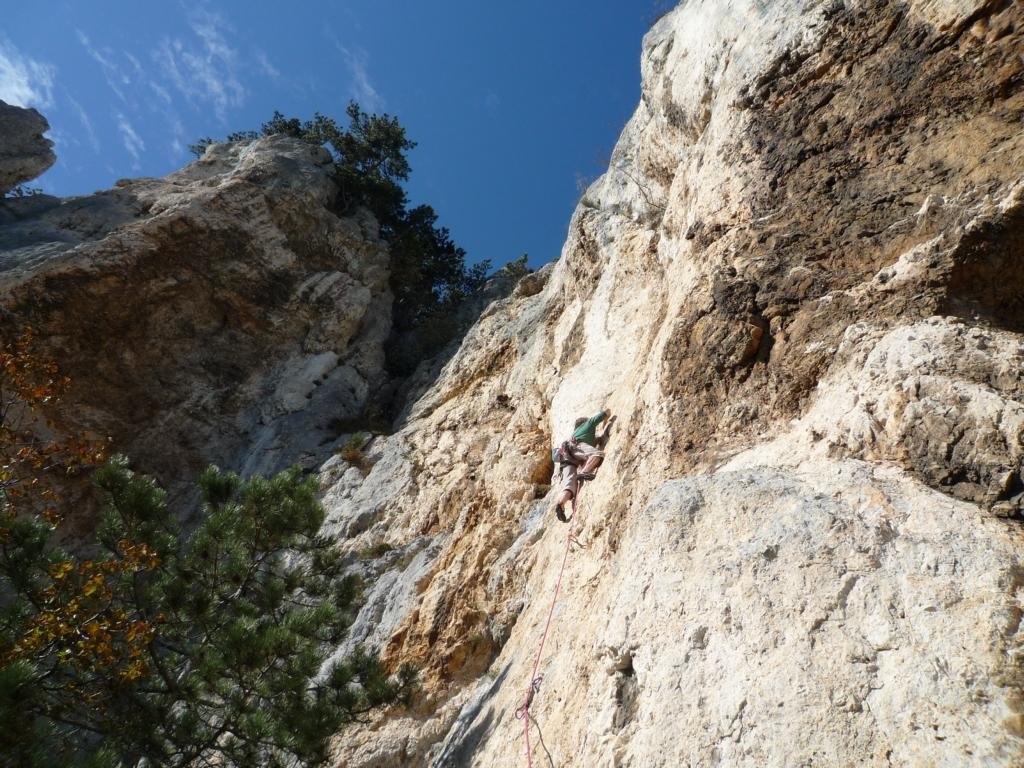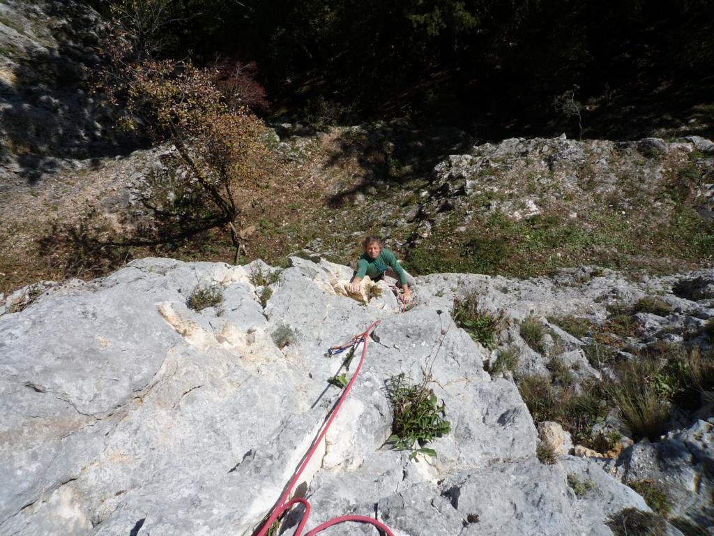 Schöne Neutour in der Hochfallwand links des Klassikers Superlavicka, die am Ende ihr Finale in einer 50 m langen und steilen Ausdauerlänge findet. Der Fels ist in der schweren Länge noch etwas splittrig, aber das stört kaum. Die Schwierigkeit nimmt konstant zu.