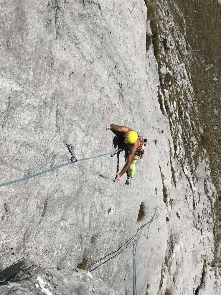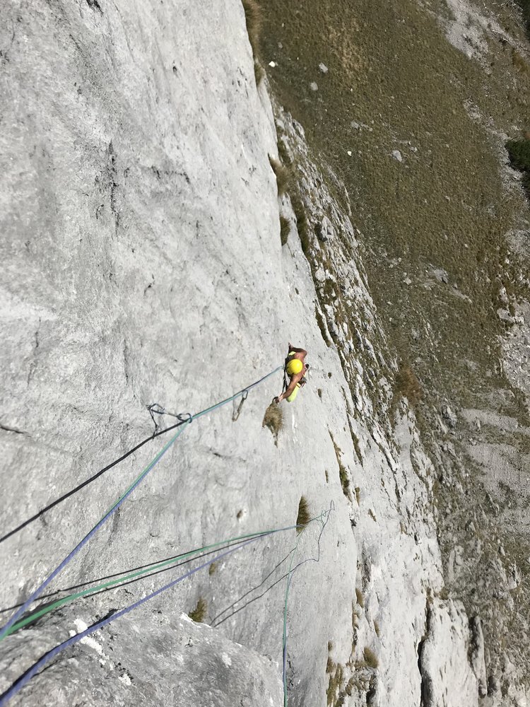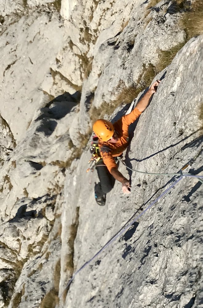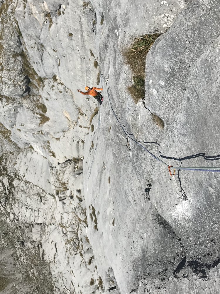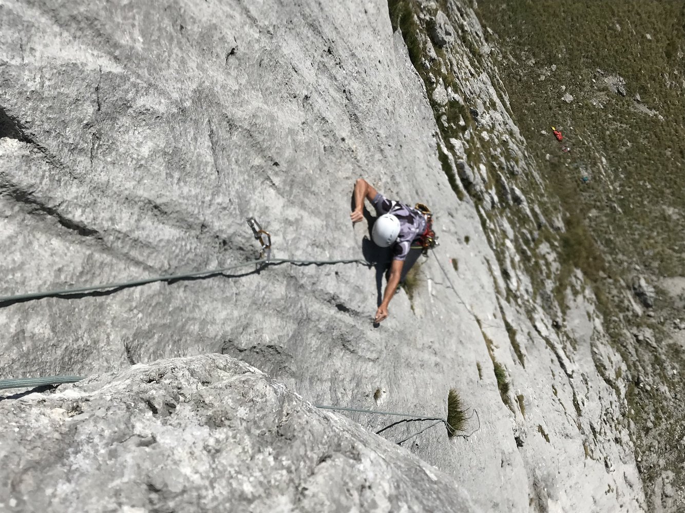 Alpine Sportkletterei mit teilweise längeren Hakenabständen. Wie bei den anderen Touren in dieser Wand Sylvi-Line etc...