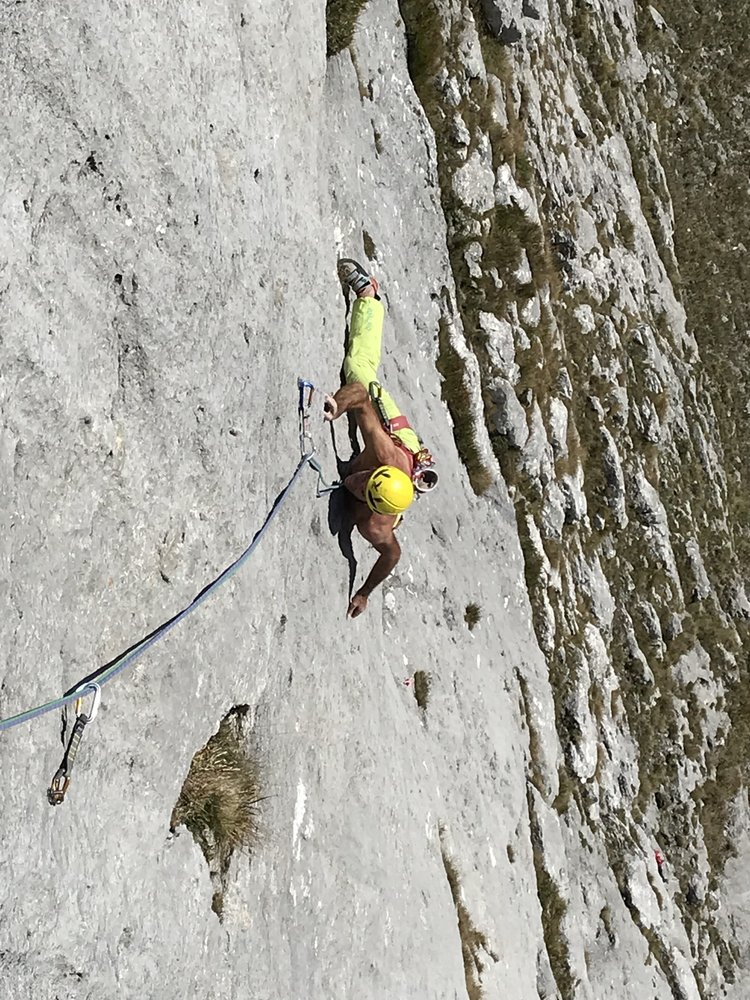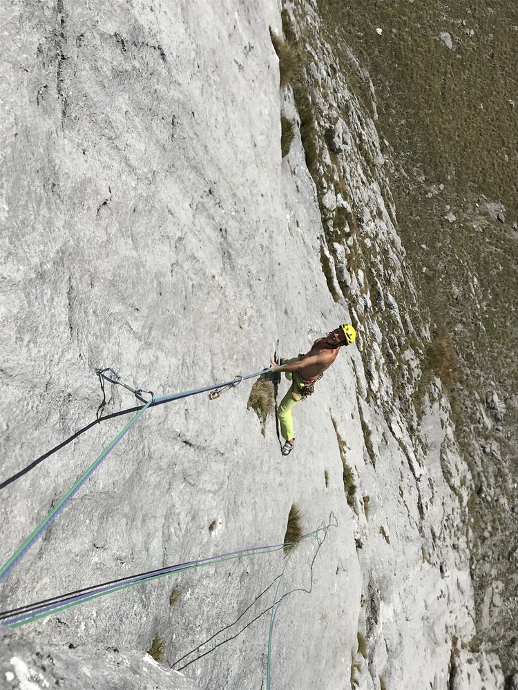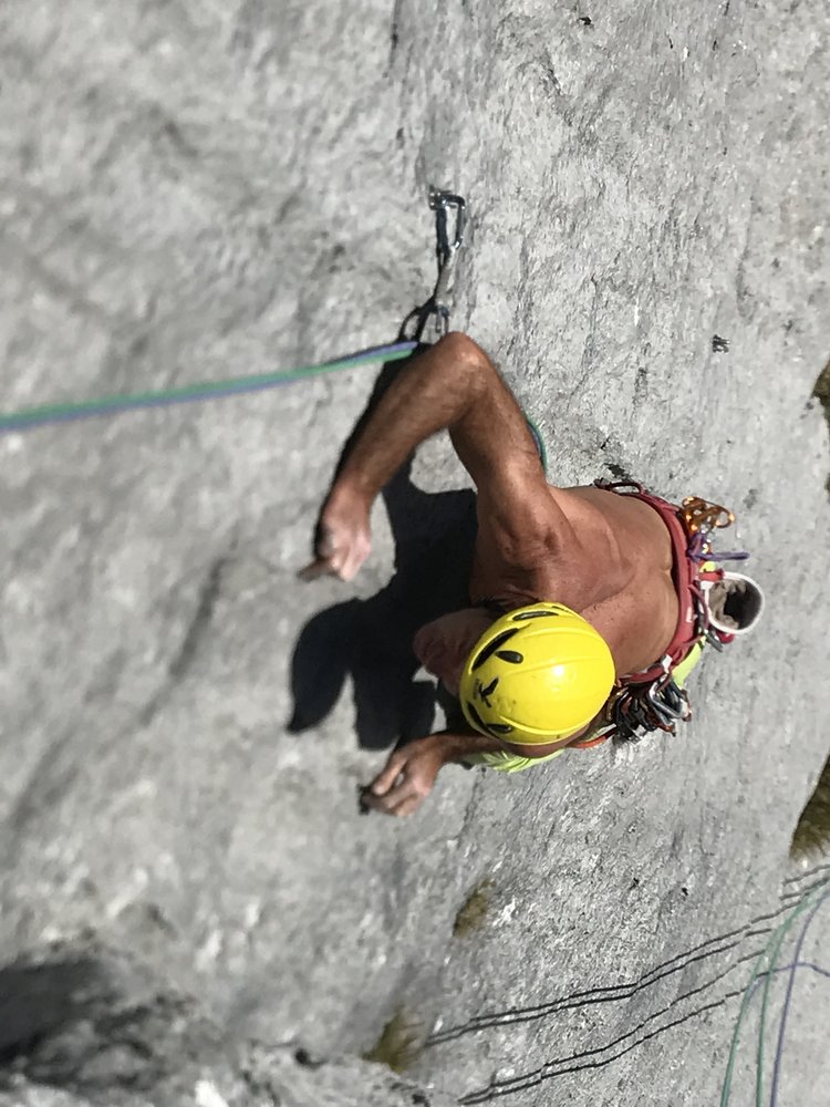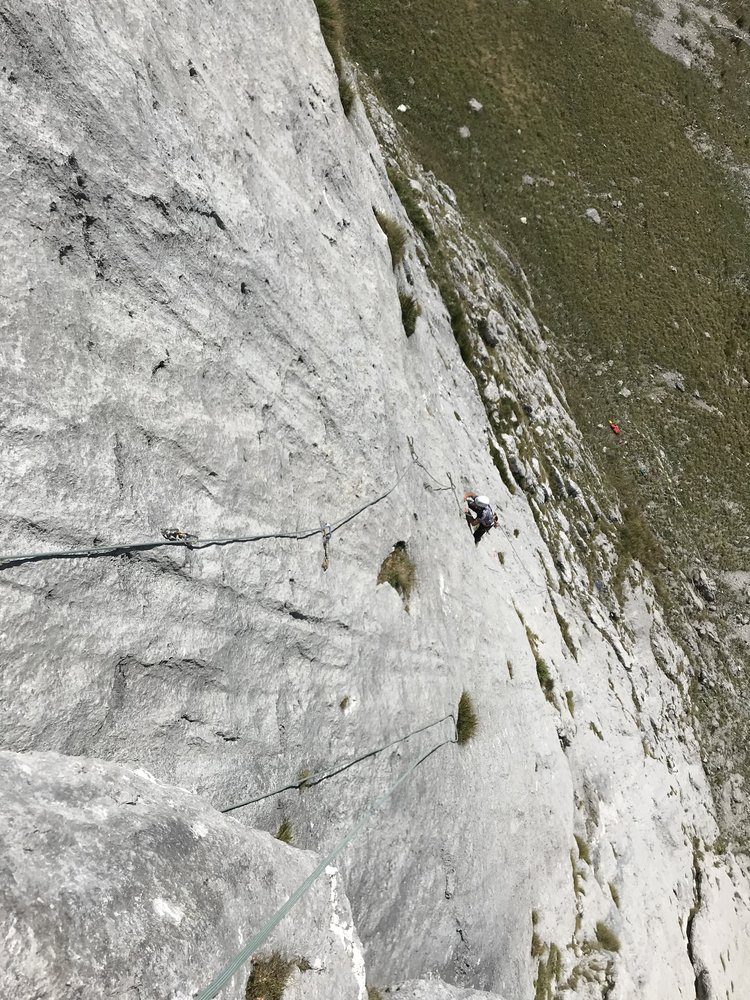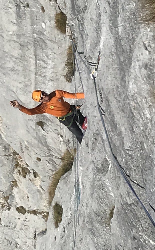 Alpine Sportkletterei mit teilweise längeren Hakenabständen. Wie bei den anderen Touren in dieser Wand Sylvi-Line etc...