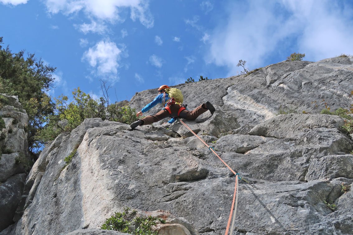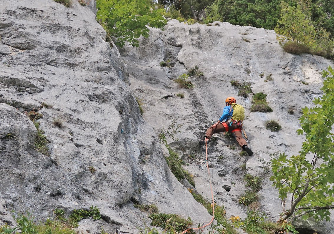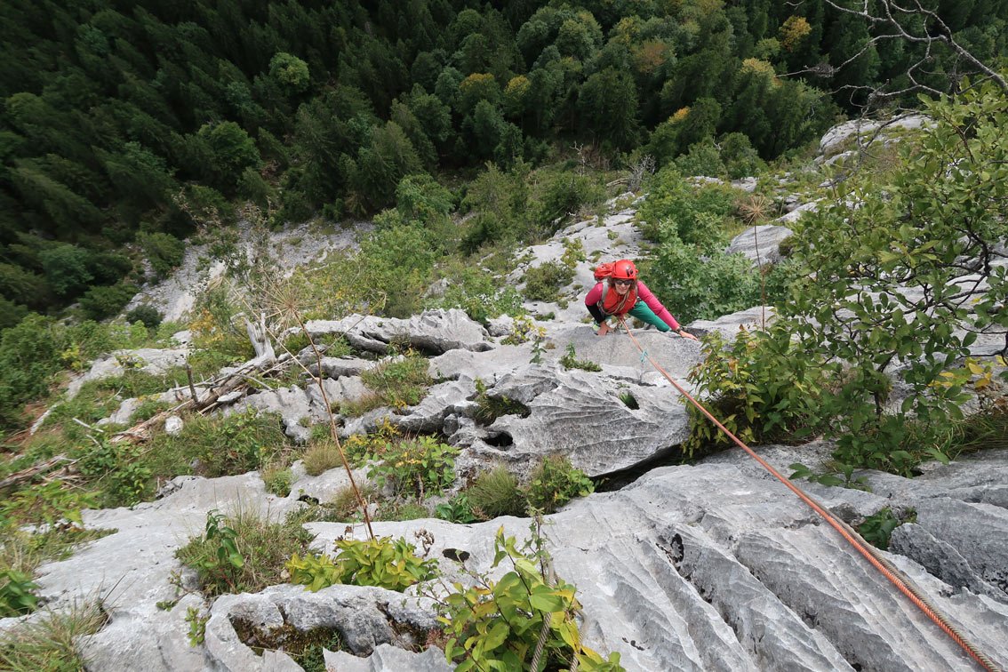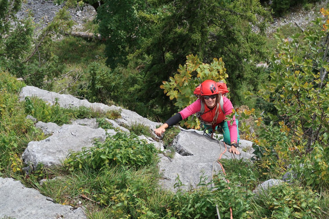 Die Route ist sehr gut abgesichert, aber kein Superplaisir. In den ganz leichten, grasigen Abschnitten weite Abstände.