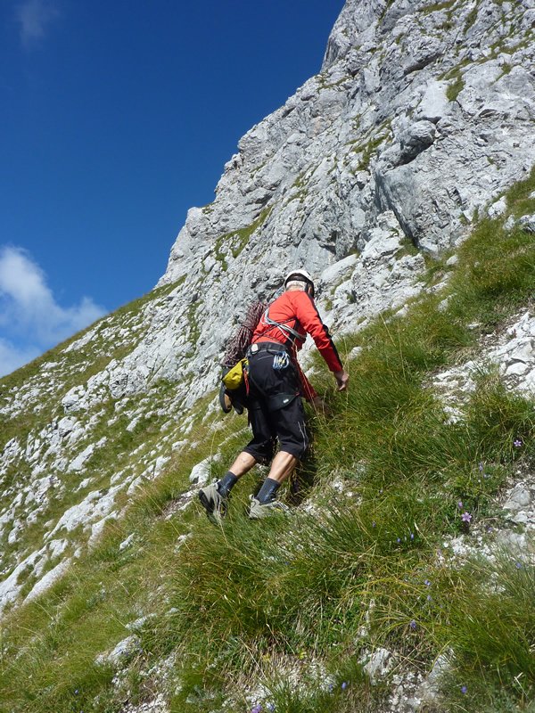 Achtung, der Zu- und Ausstieg, welche über sehr steile Wiesenhänge führen, kann nach Regen sehr gefährlich sein. Keinen Steinschlag auslösen.