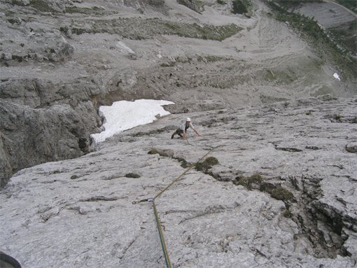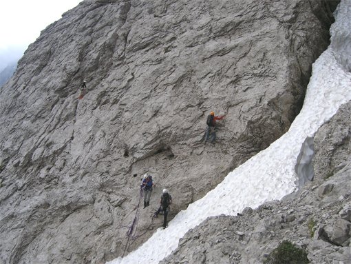 Eine Seillänge 5-, eine 4+, sonst meist um 4