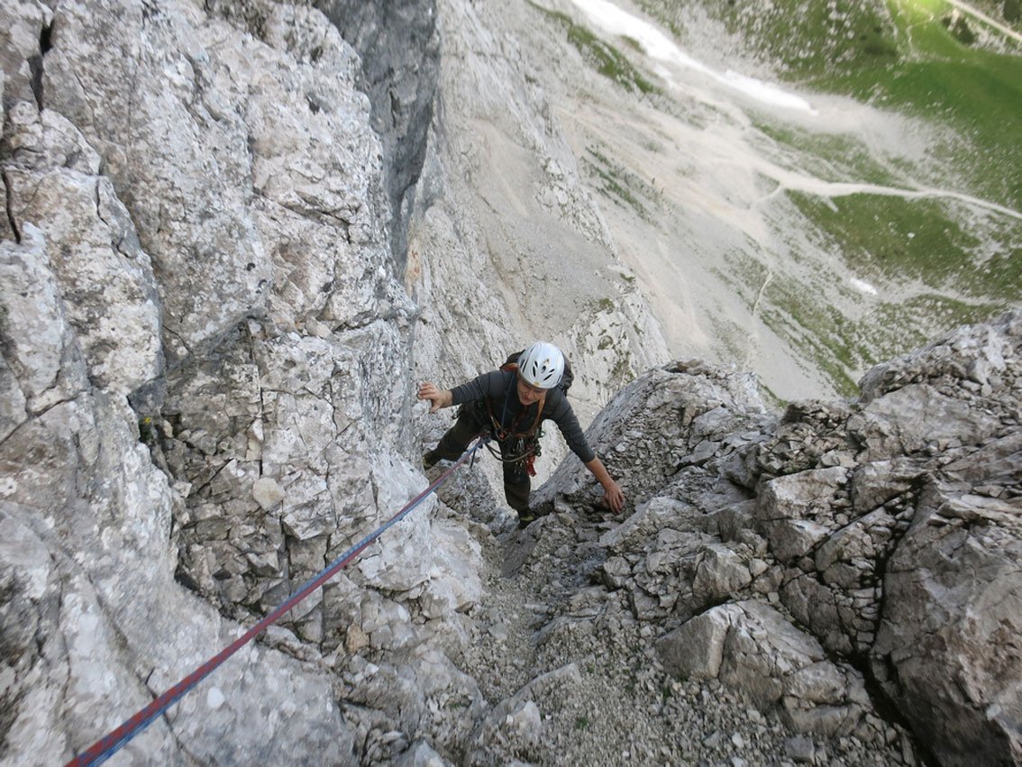 "Klassische" Linie durch eine steile Wand. Unten wie in der Bernadeinwand typisch brüchig (und in der 2ten Seillänge auch oft nass), nach oben wird der Fels aber immer besser! Die Route hält sich überwiegend an einer steile Rampe, welche die ganze Wand von rechts unten nach links oben durchzieht.