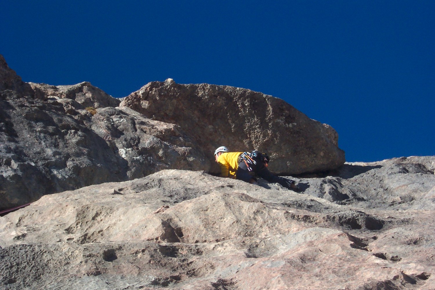 Route ist gut mit BH abgesichert. Ein Satz Keile und Friends bis Größe 3 sind notwendig!